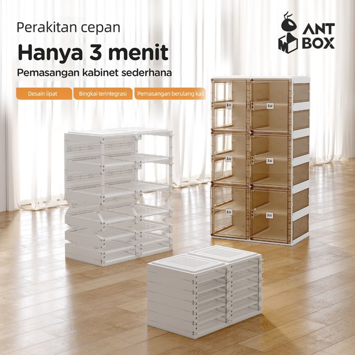ANTBOX Rak Sepatu Susun 2 Baris 8 Pasang Sisi Transparan Lemari Sepatu Anti Debu Pintu Magnet
