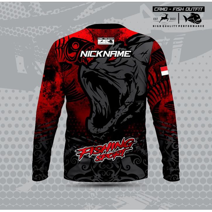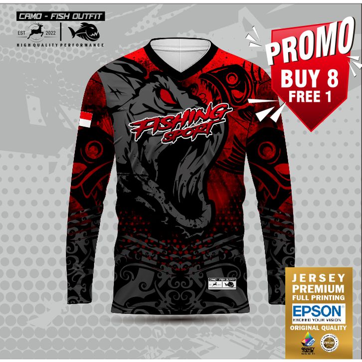 Jersey Mancing Jersey mancing Fishing Sport Dry Fit Premium Motif Red Predator