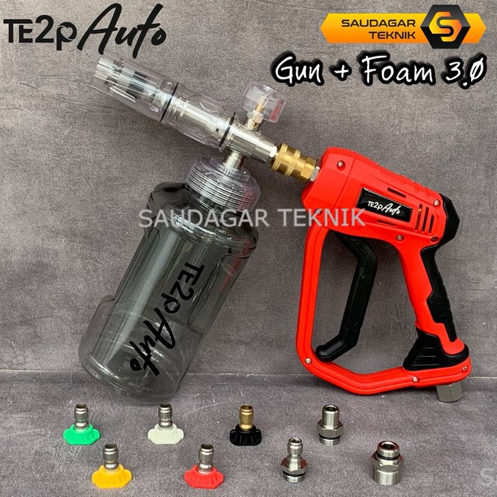 Te2p Auto Premium Gun Jet Cleaner + Foam Lance 3.0 Nozzle Spray Quick Release Semprotan Mesin Steam Cuci Mobil Motor Ke
