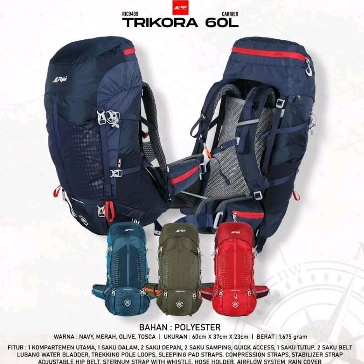 Tas Carrier Rei Trikora 60L+Raincover Original