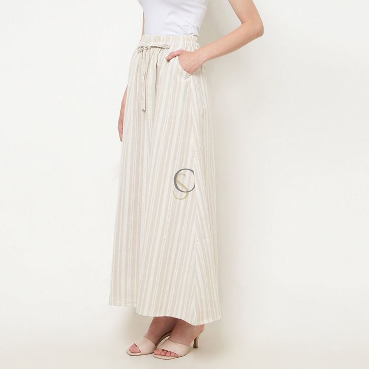 Rok Lebar Linen Premium - Rok Panjang Wanita - Rok Salur Wanita - Maxi Skirt Linen