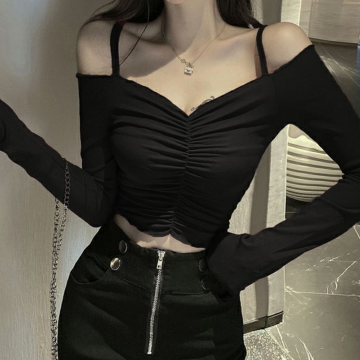 Long Sleeve Crop Top Shirt Without Shoulder Wrinkles 1738 (S/M/L/XL)