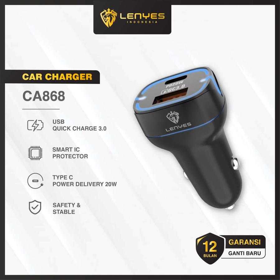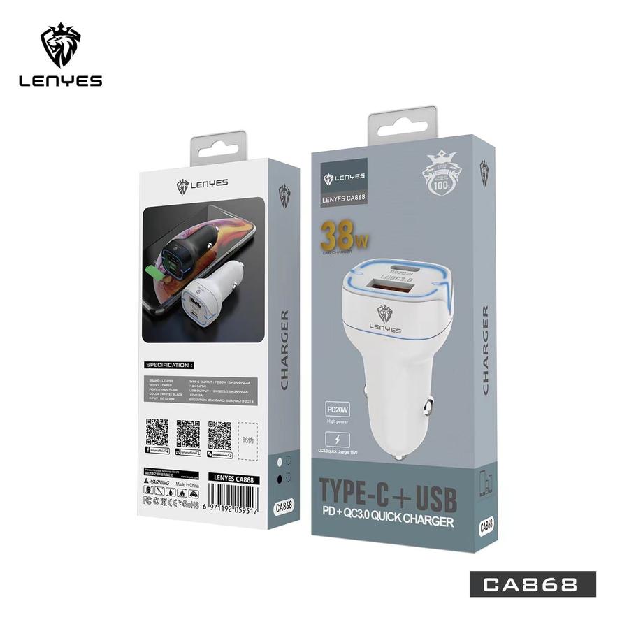 Charger HP LENYES CA868 38W Mini Car Charger PD 20W QC 3.0 Fast Charging Power Delivery Adapter Hp Mobil Original Offici