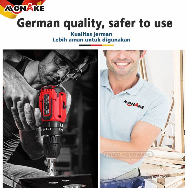 (GRATIS ONGKIR) YUKIDO Red 12V 36V Mesin Bor Cordless bor listrik 2 baterai set - BOR TAMPA KABEL BOR PORTABLE