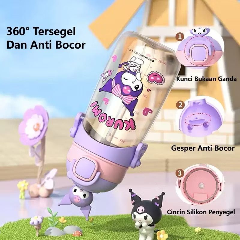 BOTOL MINUM ANAK LABUBU SANRIO KUROMI 650ML TALI PANJANG BPA FREE/ BOTOL ANTI TUMPAH ANAK SEKOLAH