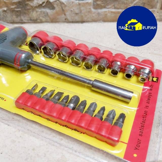PREMIUM Obeng Sok 21pcs 21 pcs Set Model Gagang T Handel Mata Kunci Sok Shock Sock - BISON anohc