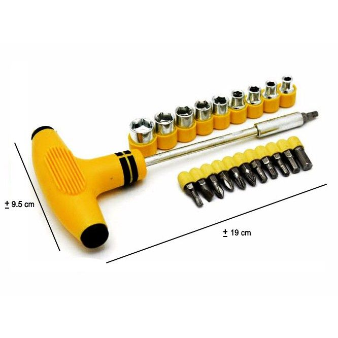 MURAH NQB - Obeng T Five Star 24pcs Socket & Bits Set Kunci T Alat bengkel Tool kit Min Plus ebilf