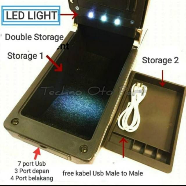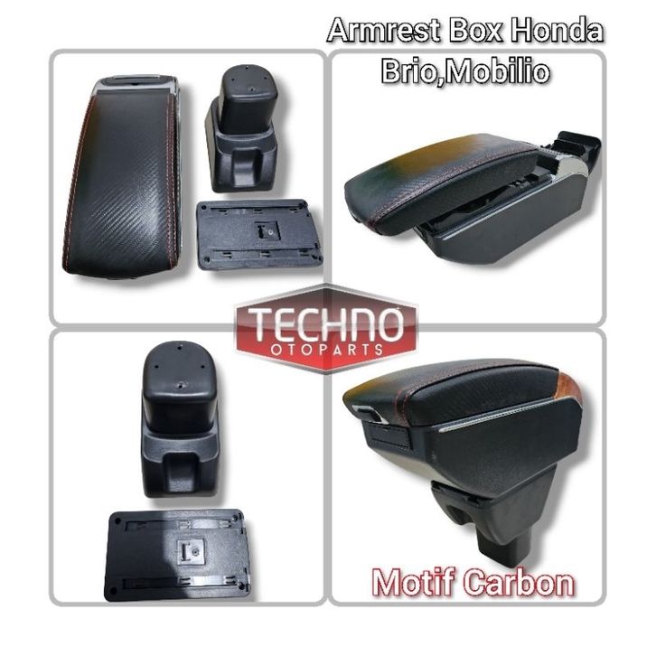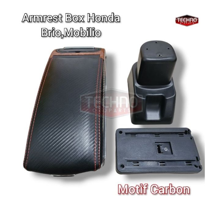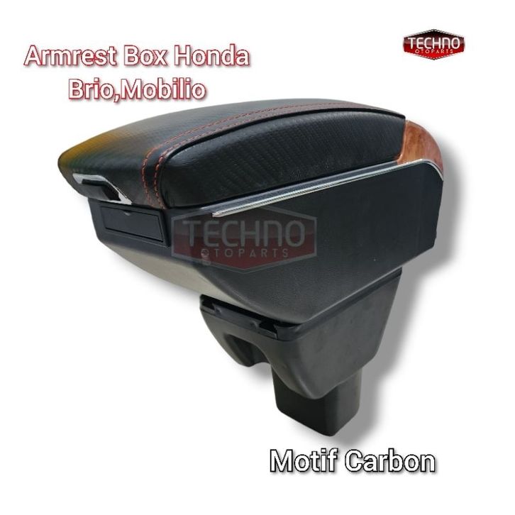 Console Box Mobil Armrest Console Box Motif Carbon Honda Brio Dual Layer 7 Usb + Led Light
