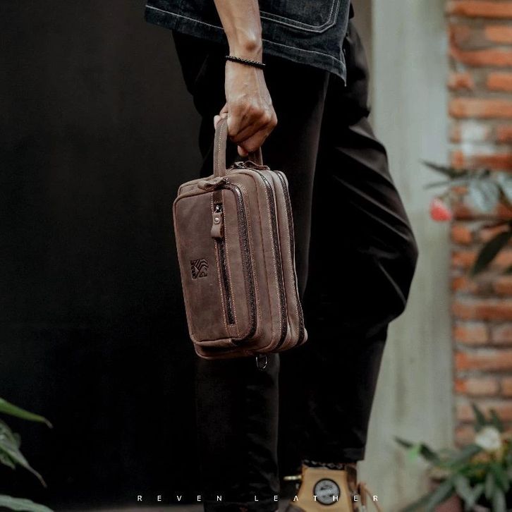 [Mall] Reven Leather Nakula Pouch Bag - Tas Pria Miltifungsi Kulit Sapi Asli Free Dompet STNK