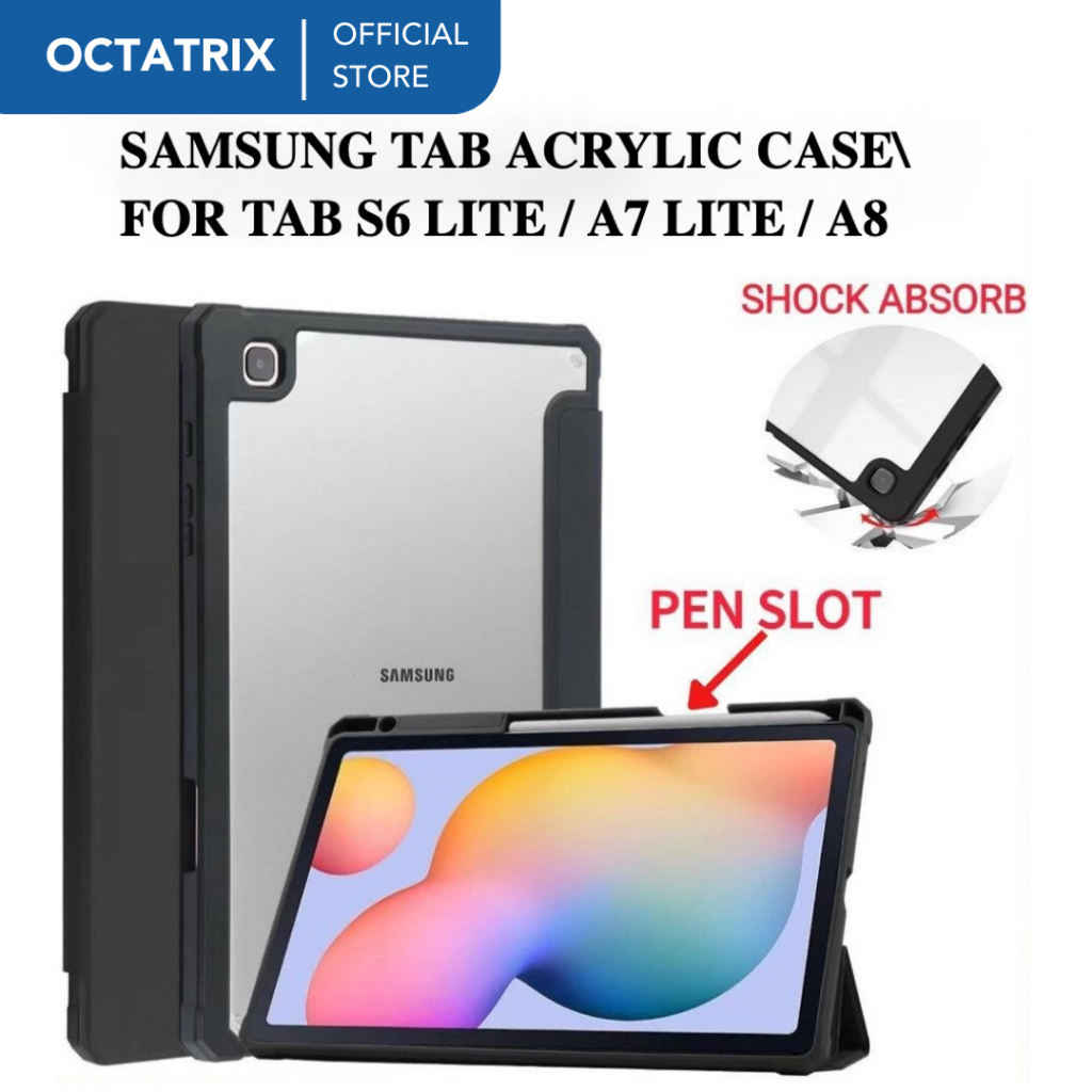 Case Samsung Tab S6 Lite 10.4" Smart Clear Acrylic Case Autolock For Samsung Tab S6 LITE 2022 / A7 LITE 8.7 INCH / A8 10.5 Inch / A9 8.7 Inch / A9+ 11 INCH Premium Quality With Pen Slot