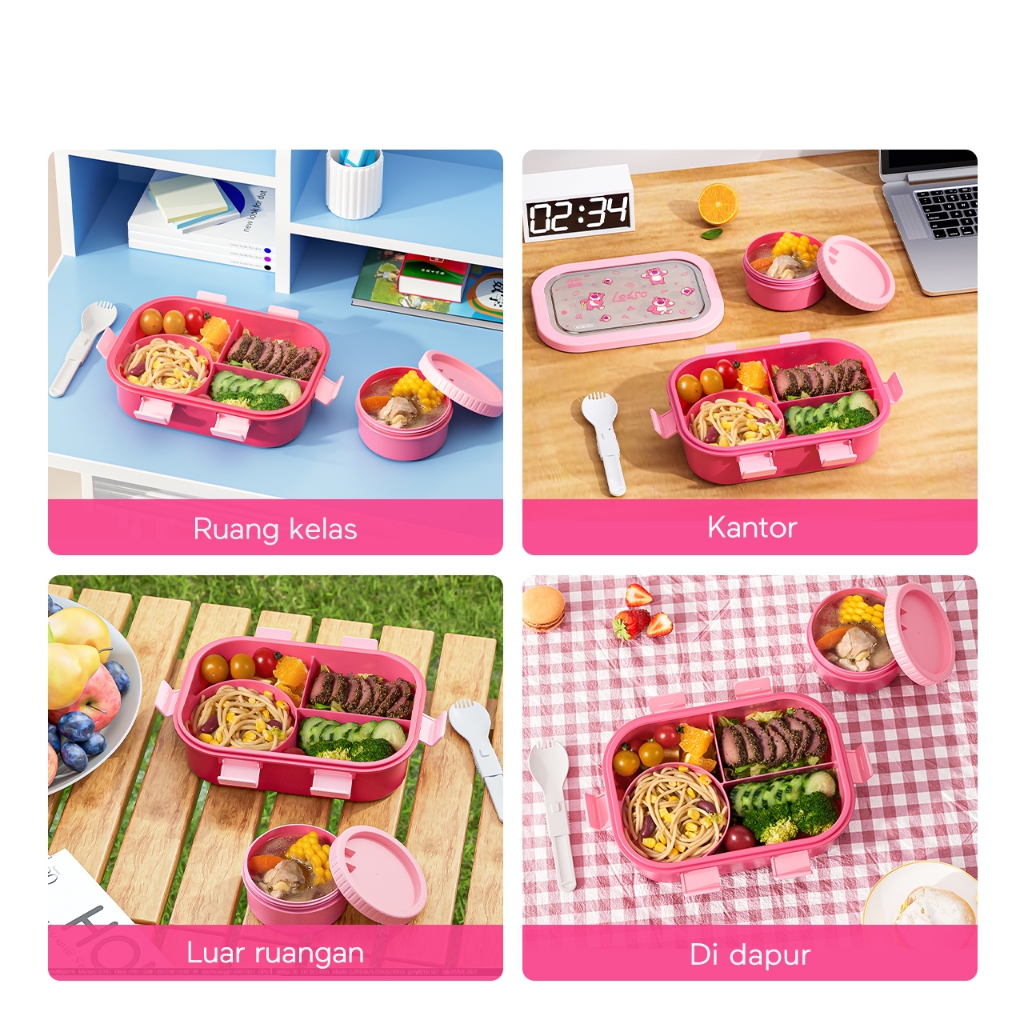 ecentiokids x Lotso Kotak Makan 4 Sekat 1400ml + 300ml Mangkuk Sup 6 Gesper Kotak Bekal Anti Tumpah tempat bekal anak se