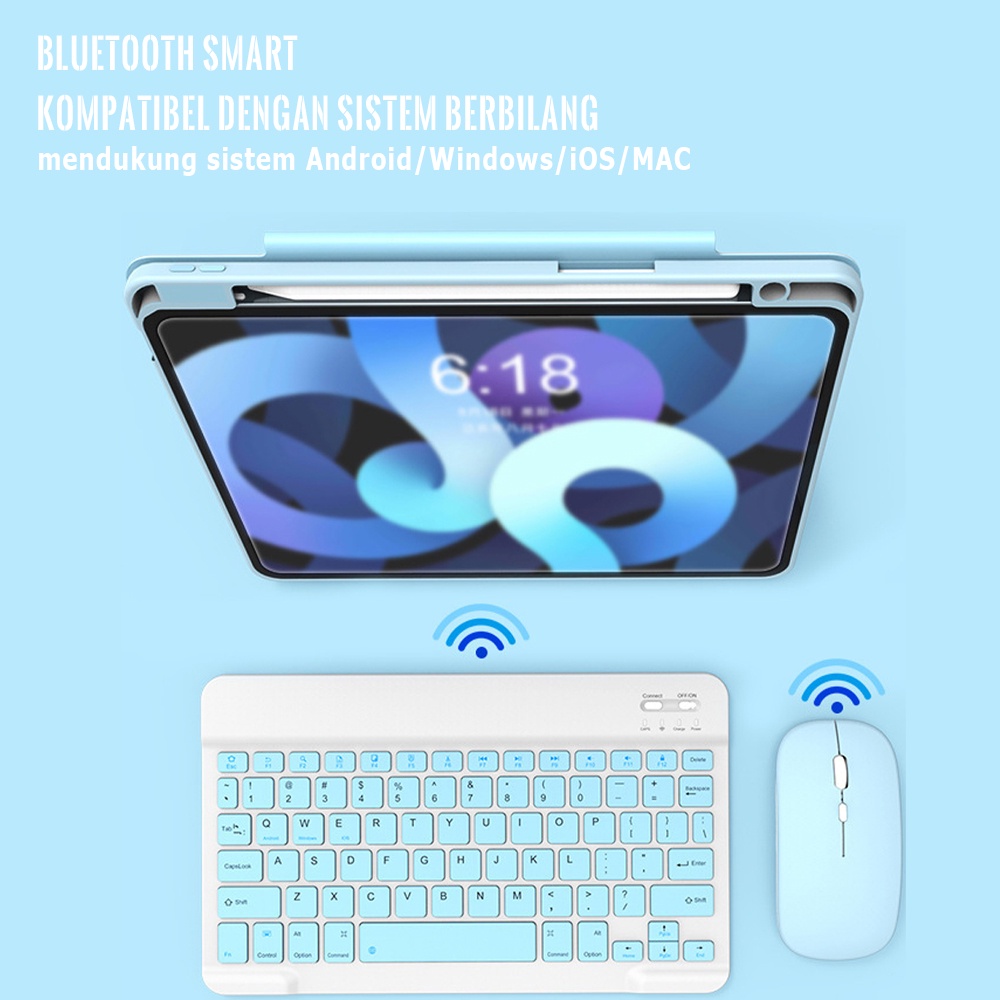 3 in 1 Wireless Bluetooth Keyboard Mouse Set Lightweight Portable USB Office Silent Click 10 Inch