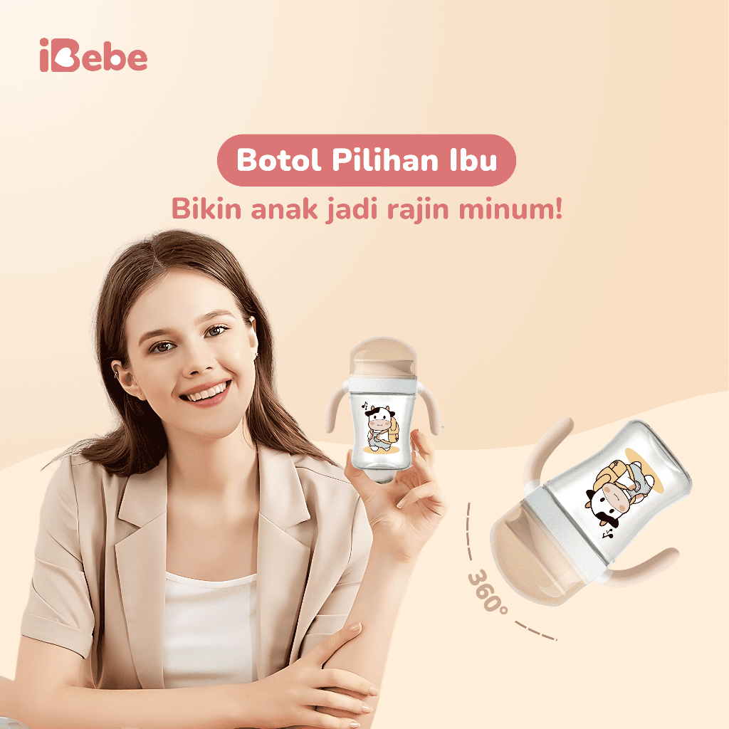 ibebe 210ml 6bln + Tritan moomoo gelas anti-tumpah with Handle / gelas anak / cup anak anti tumpah / botol minum anak