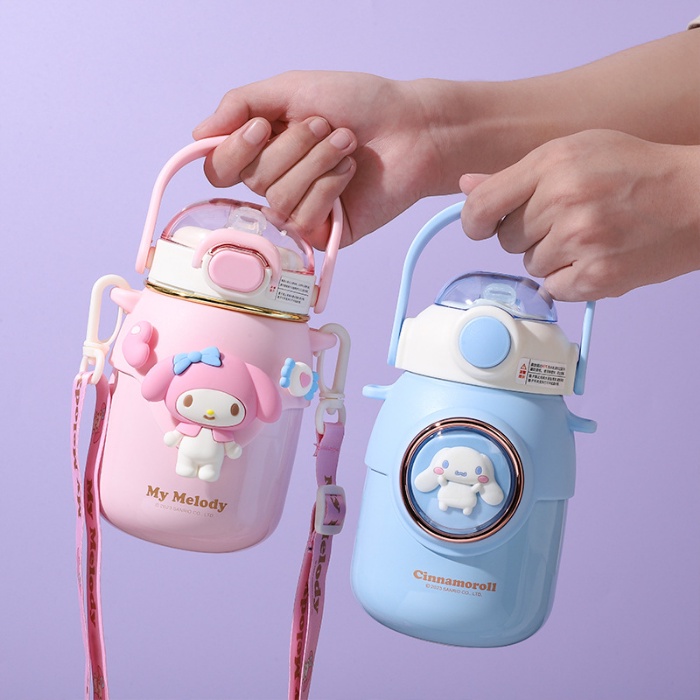 700ML Stainless 316 Kuromi Cinnamoroll Botol Minum Sedot Anak Bertali Cangkir Tali Yang Dapat Disesuaikan Sendiri Dengan