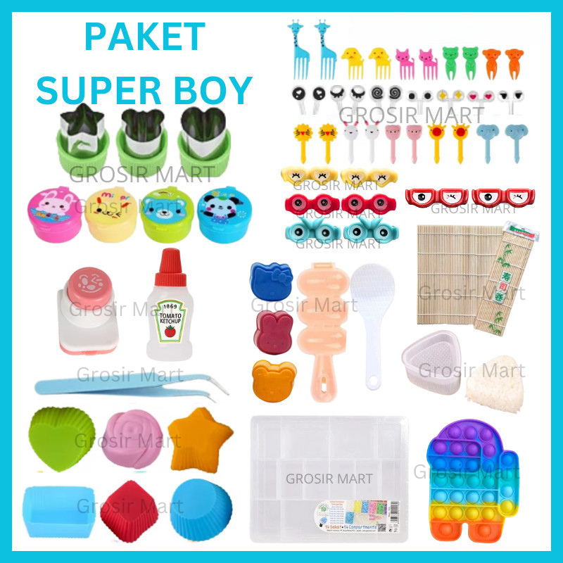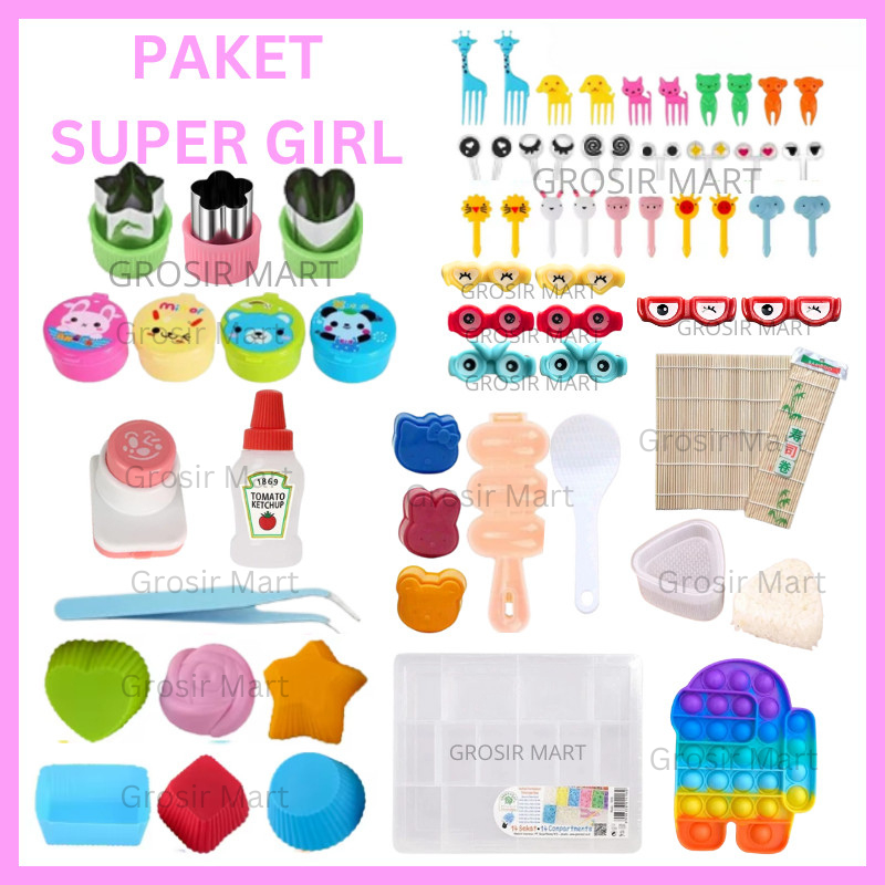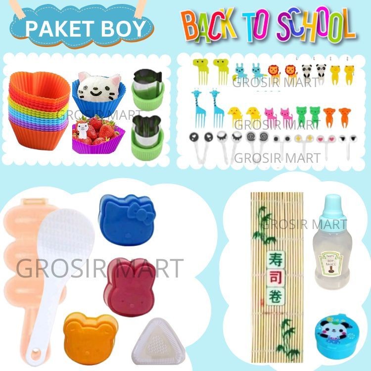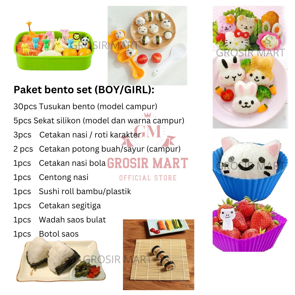 LEBIH MURAH Paket Bento Anak Perempuan Girl Boy Laki-laki Lengkap bekal makan anak Sekolah TK SD Paud Bento Tools Perlen