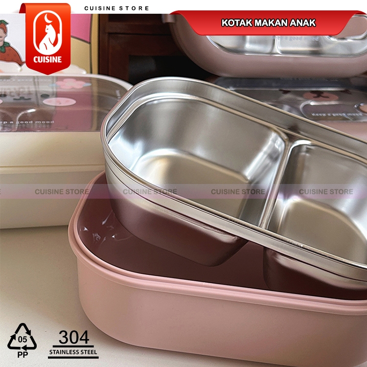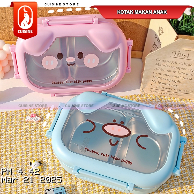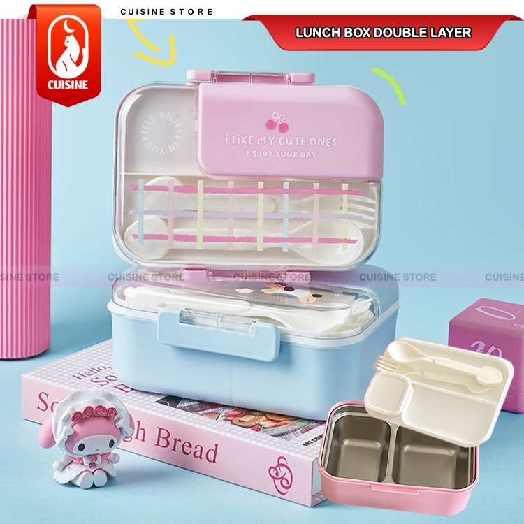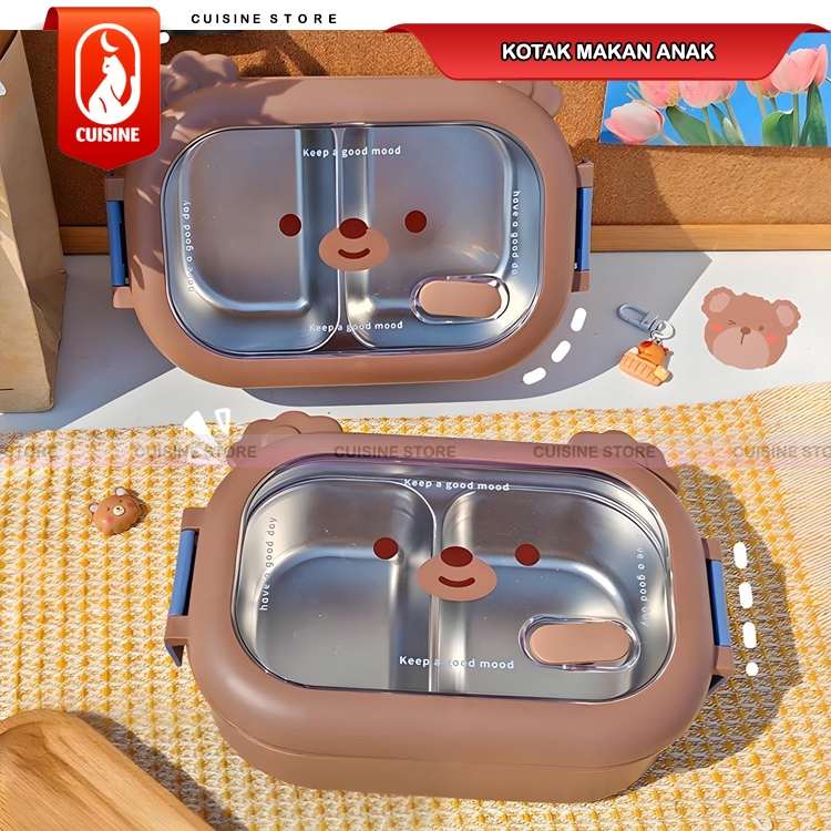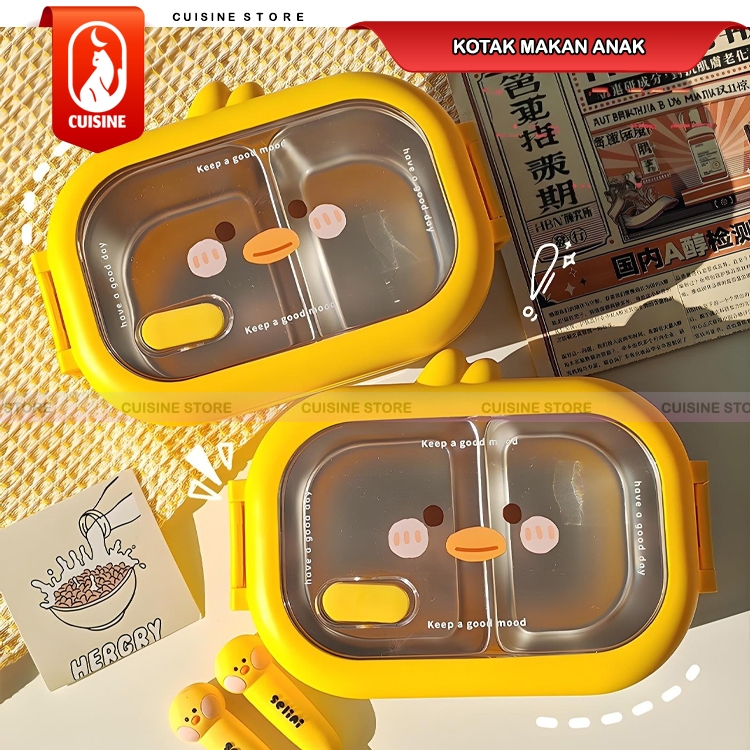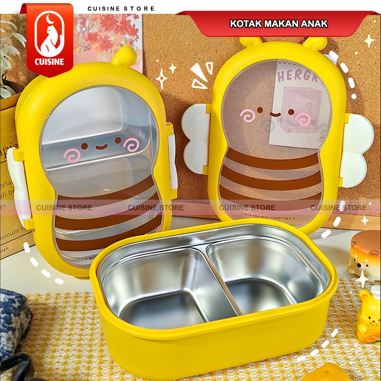 Kotak Makan Bekal Anak Sekolah Kantoran 2 sekat 1000 ML Lunch Box Stainless SUS 304 Bee Duck Bear
