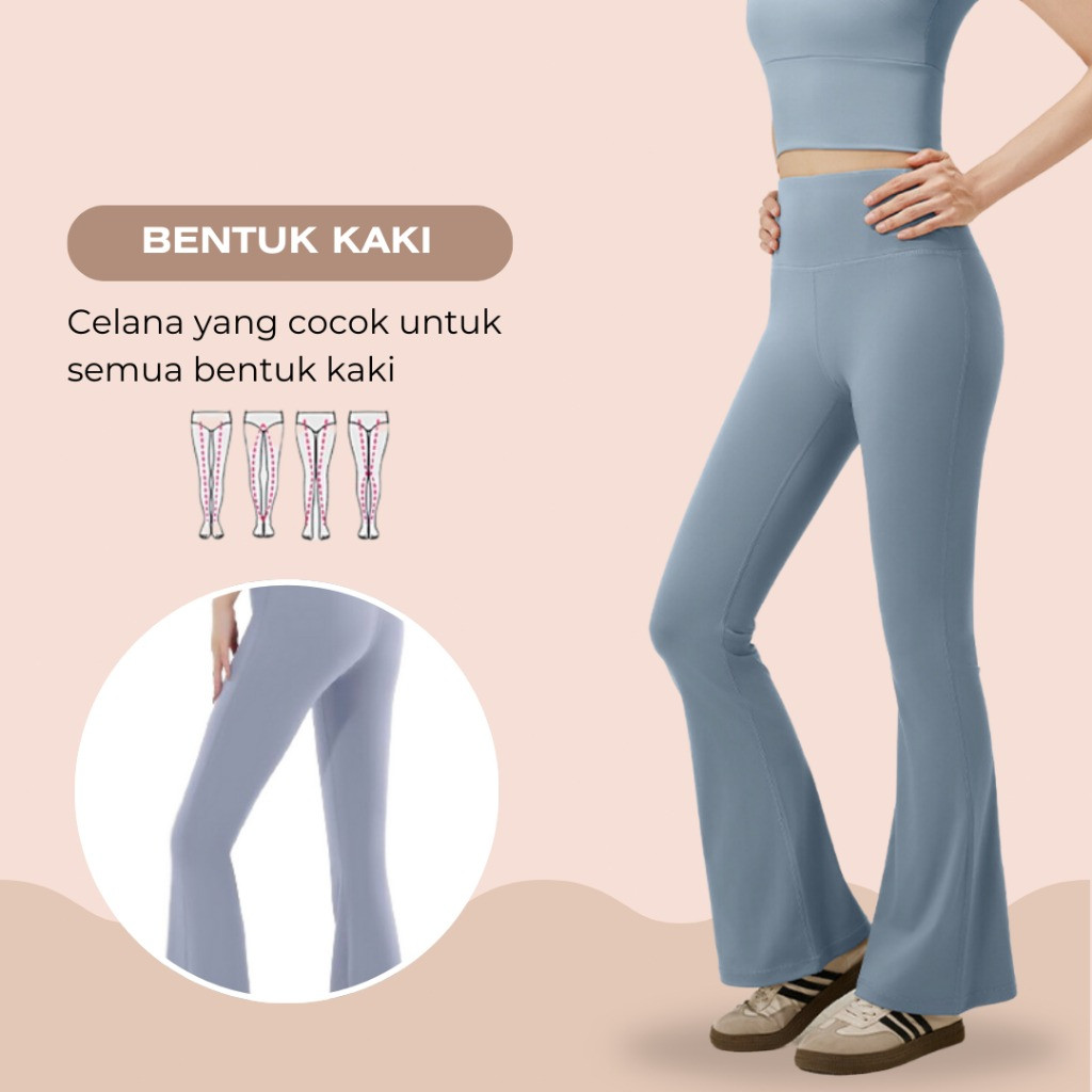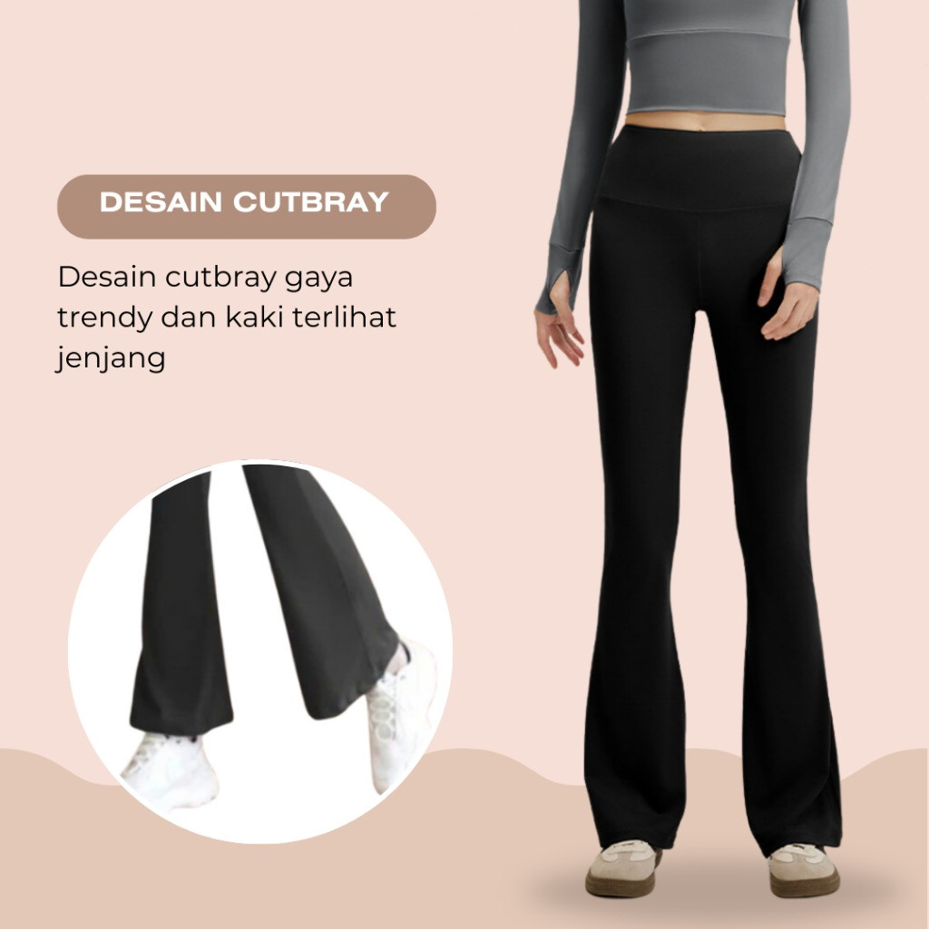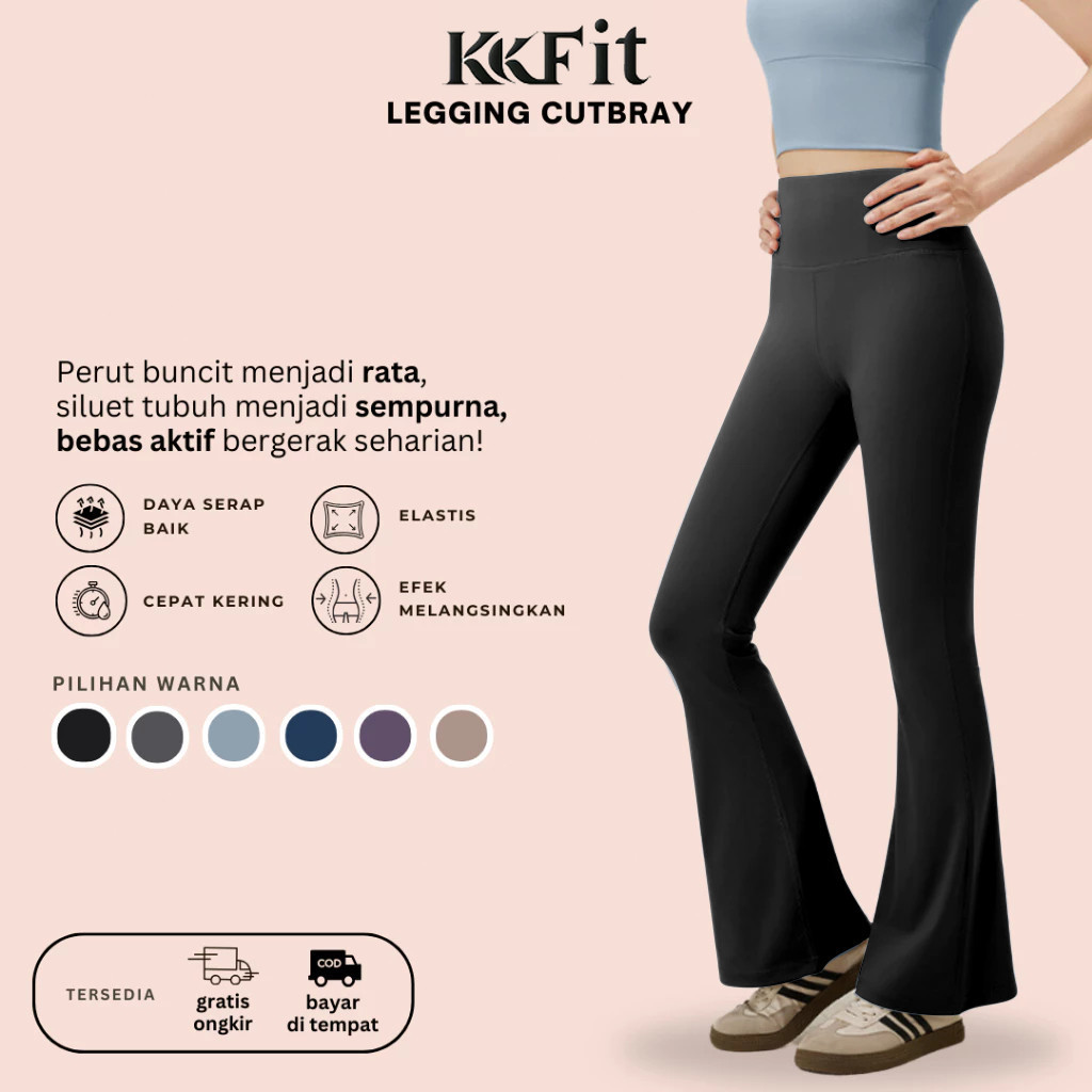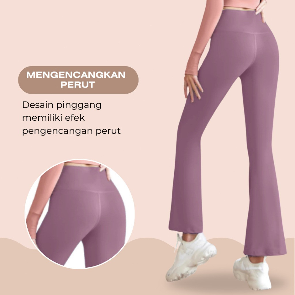 KKFIT Flare Pants - Legging Sport Celana Yoga Wanita Celana Cutbray Basic Wide Leg High Waist Yoga Pants (C001)
