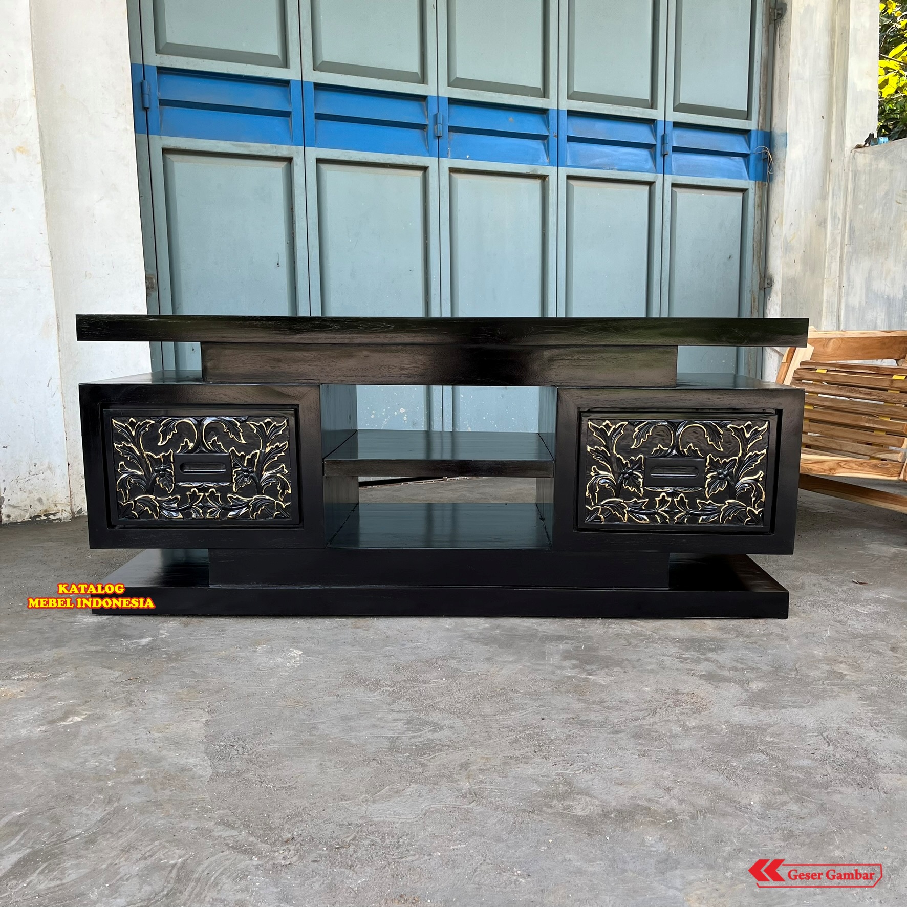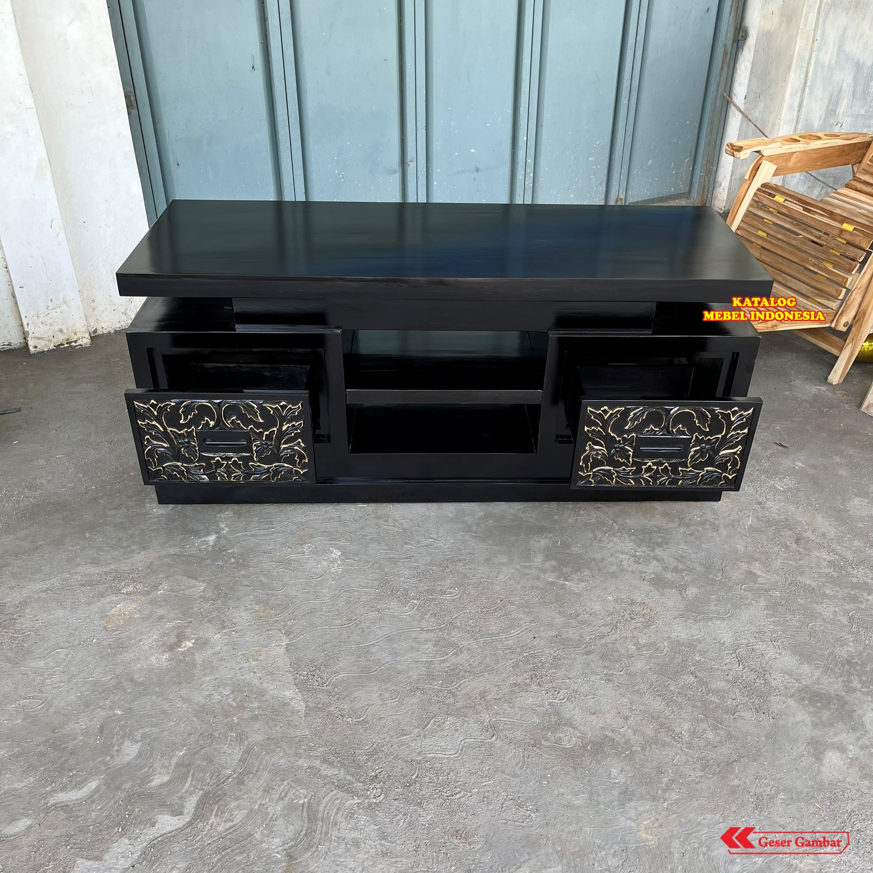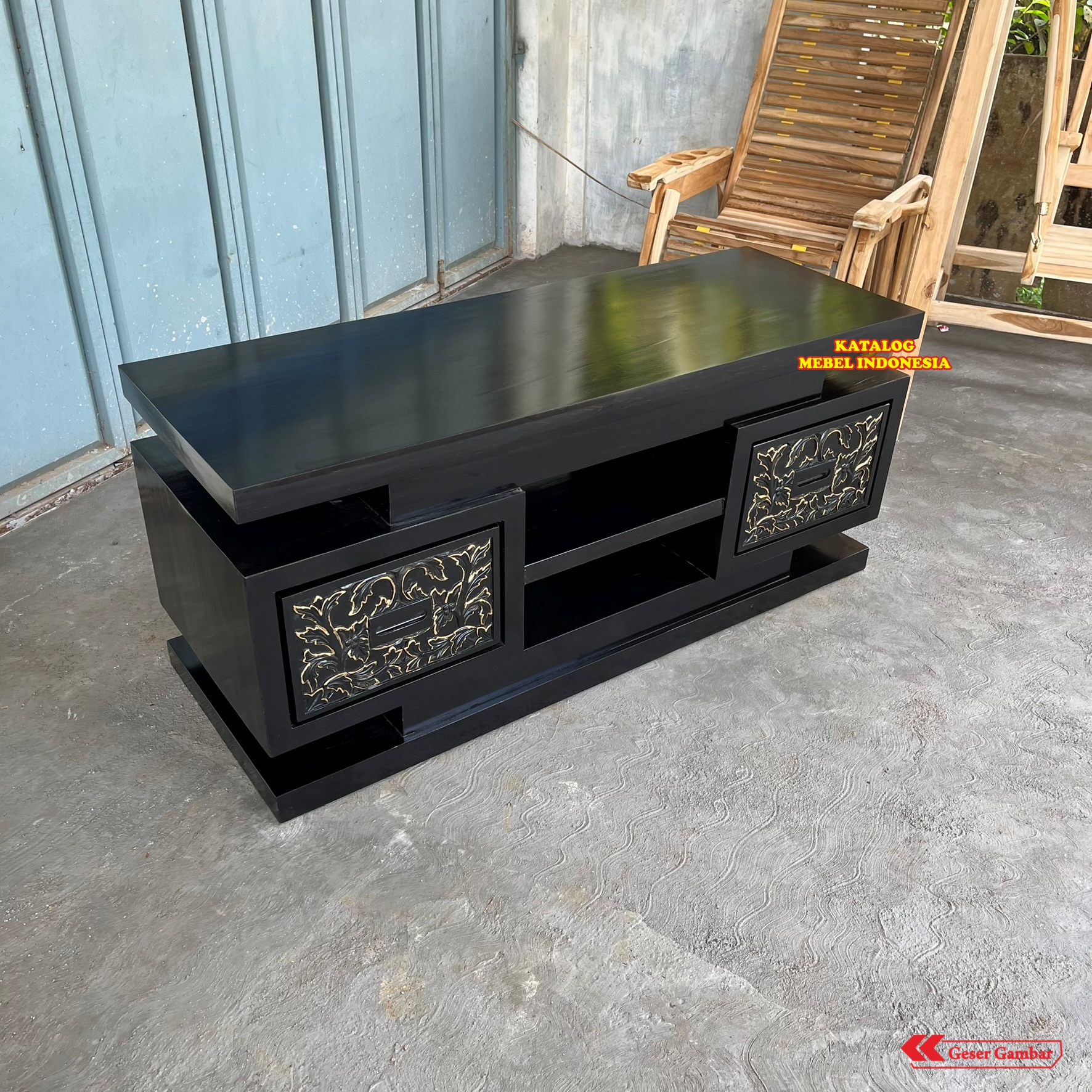 Bufet / Meja TV 2 Laci Minimalis Motiv Ukir Kayu Jati Berkualitas