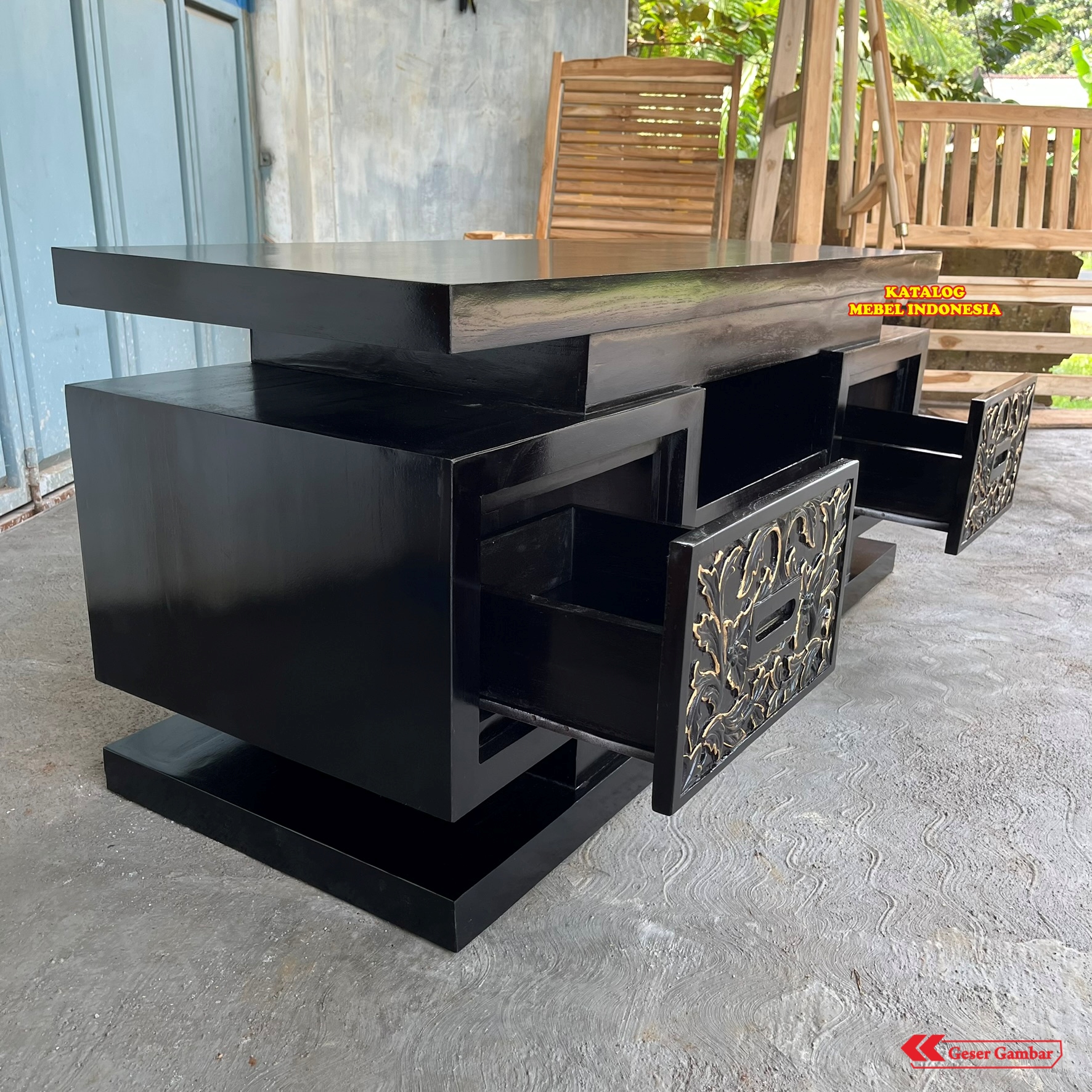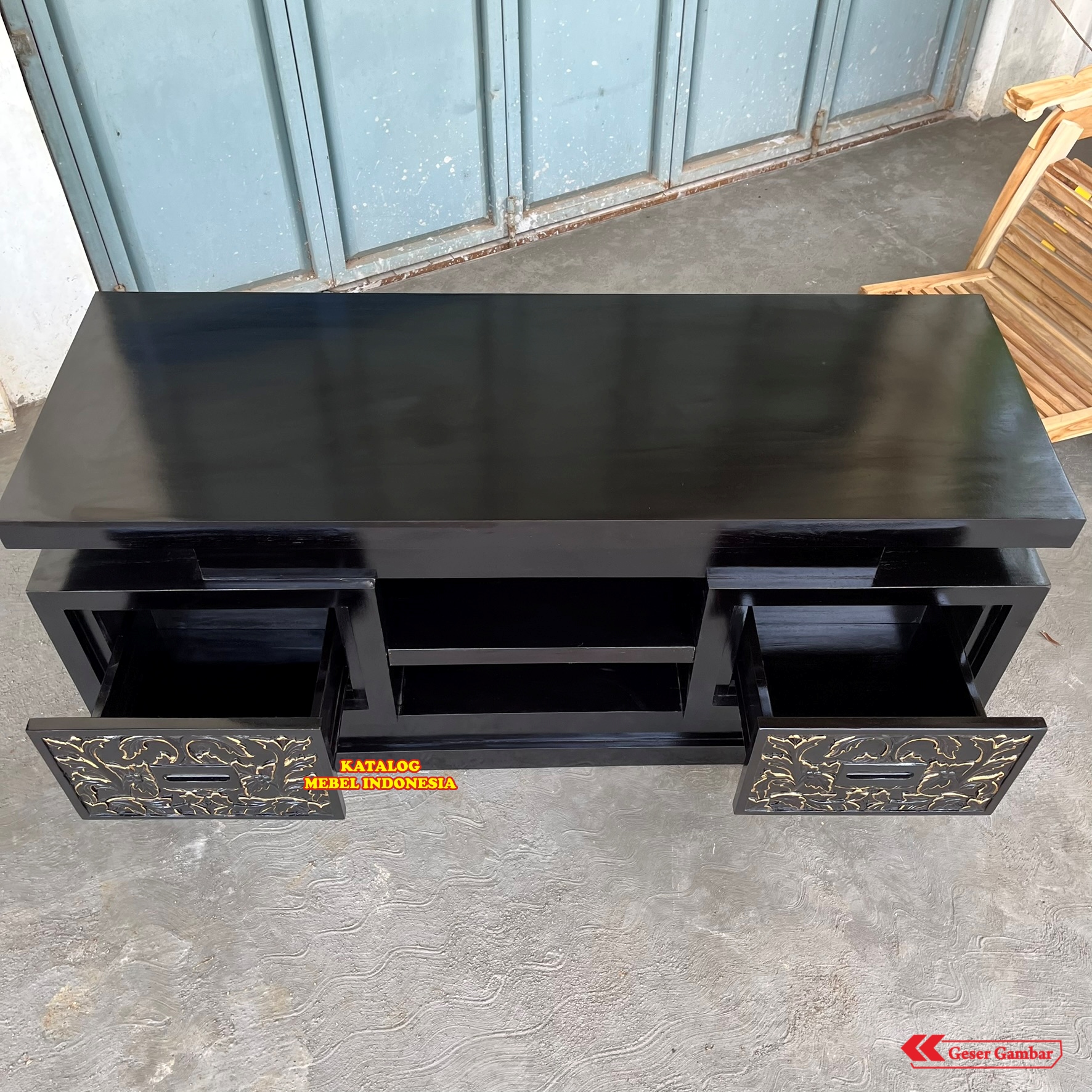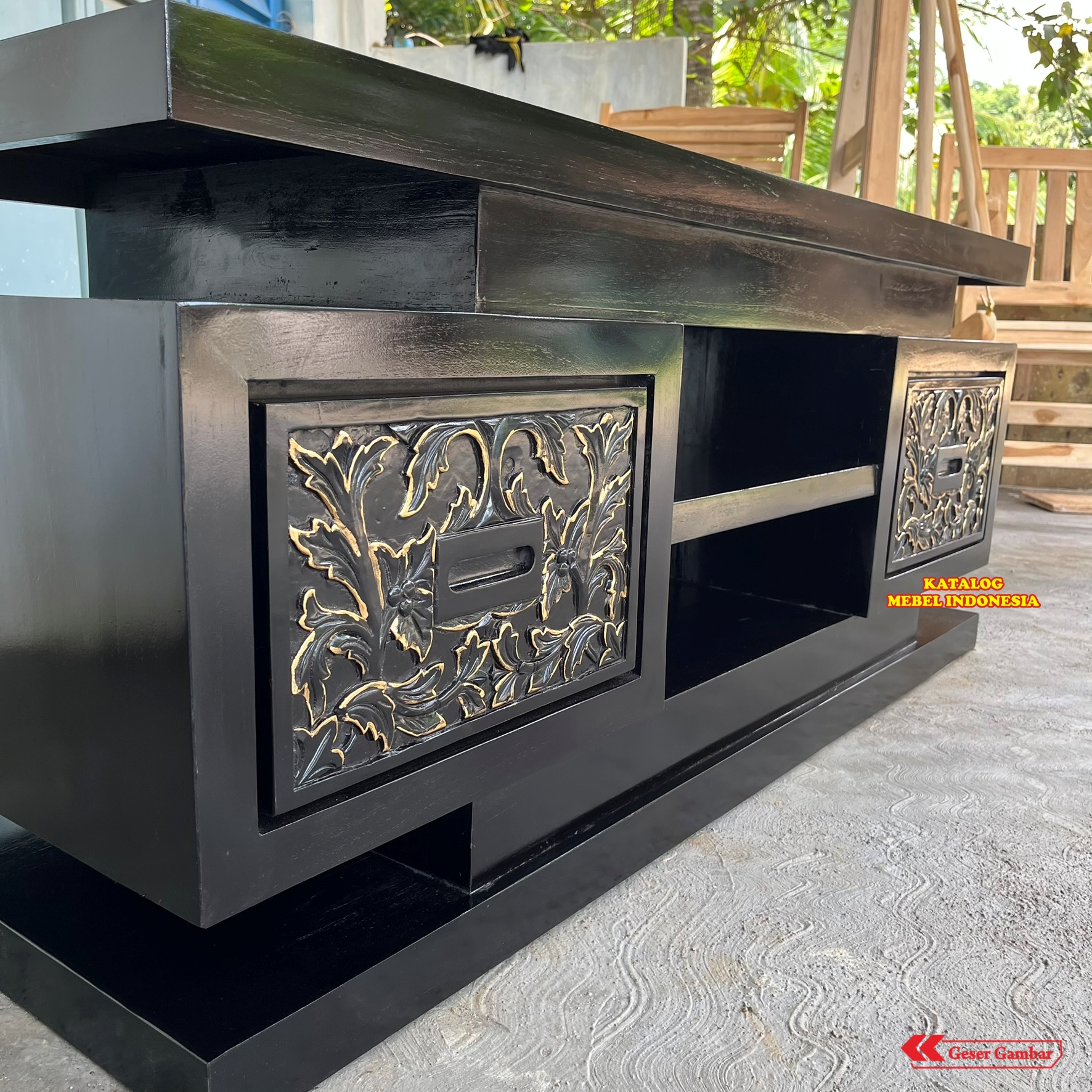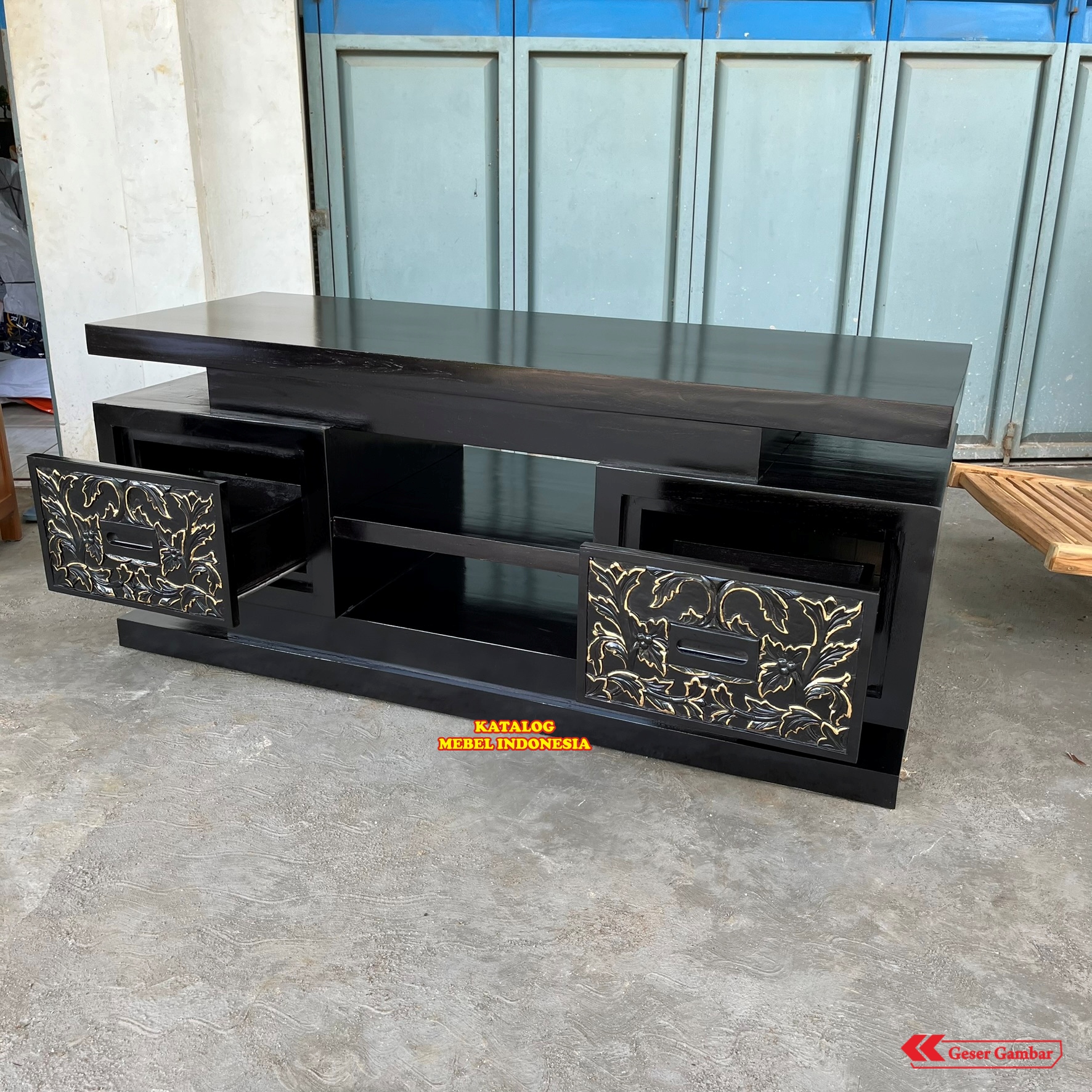 Bufet / Meja TV 2 Laci Minimalis Motiv Ukir Kayu Jati Berkualitas
