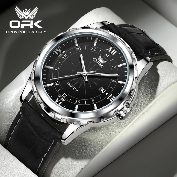 OPK Jam Tangan Pria Original Anti Air Tahan Murah Digital Sport Kulit Analog Hitam Watch Men