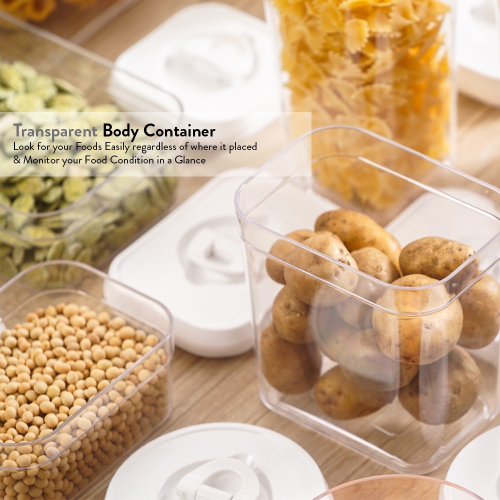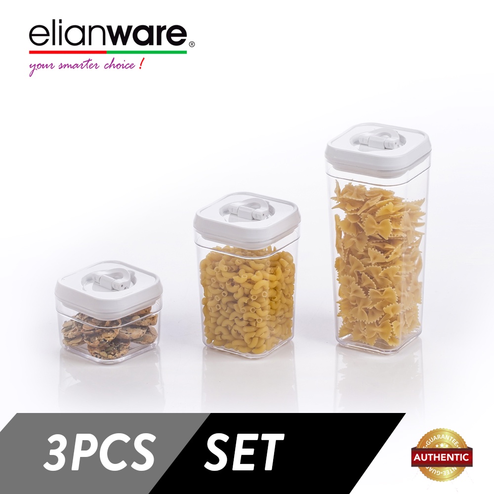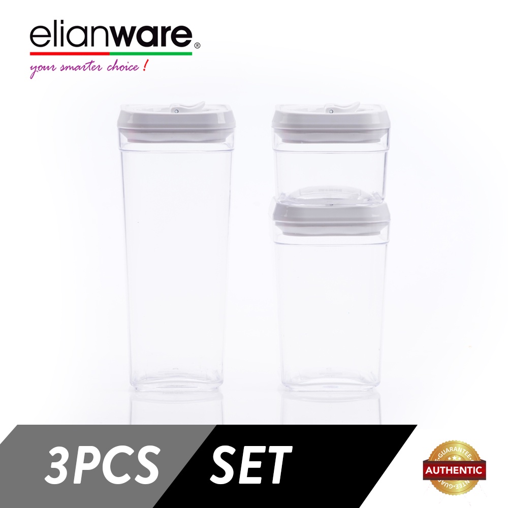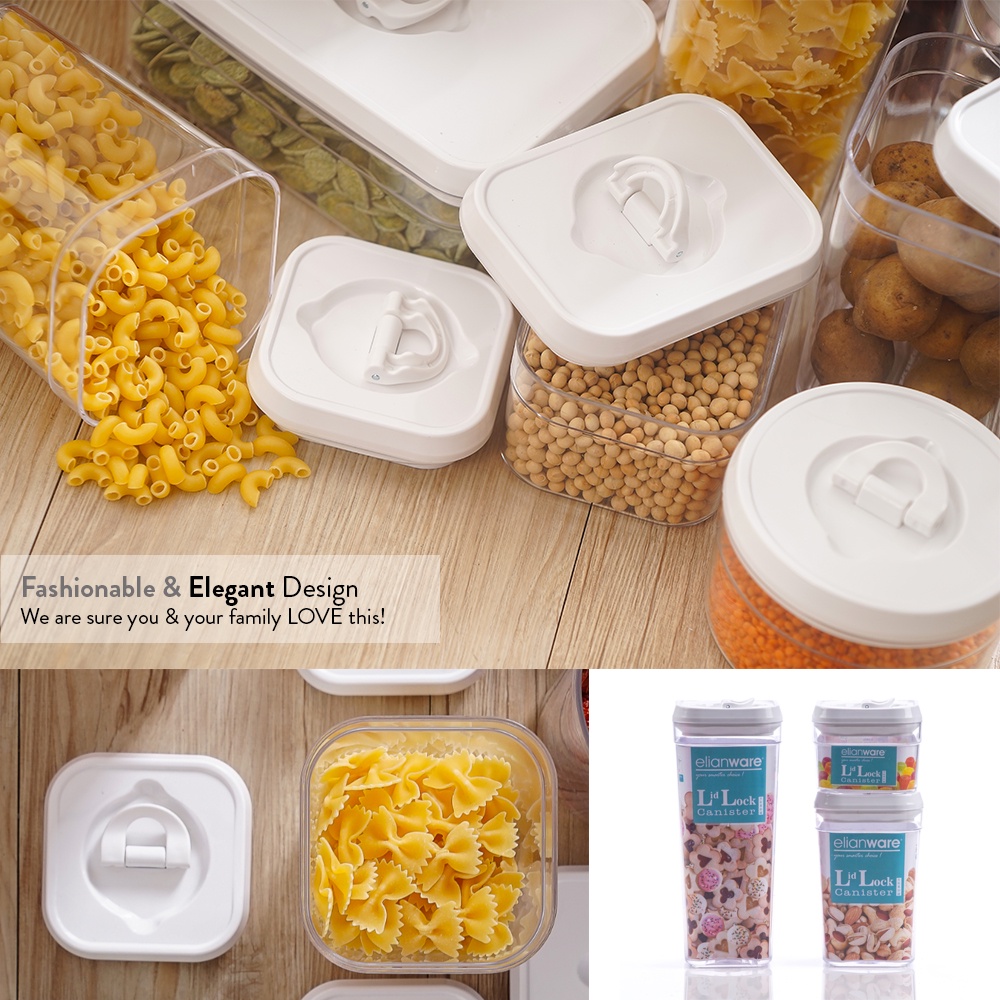 Elianware Lid Lock Airtight Square Canister Food Container Storage Milk Toples 3 Pcs
