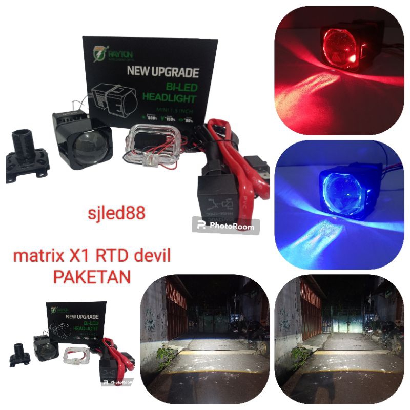 PAKETAN - Projector Biled Matrix X1 1.5inc RTD Rayton Low 40watt High 50watt Jamin Terang plus devil eye