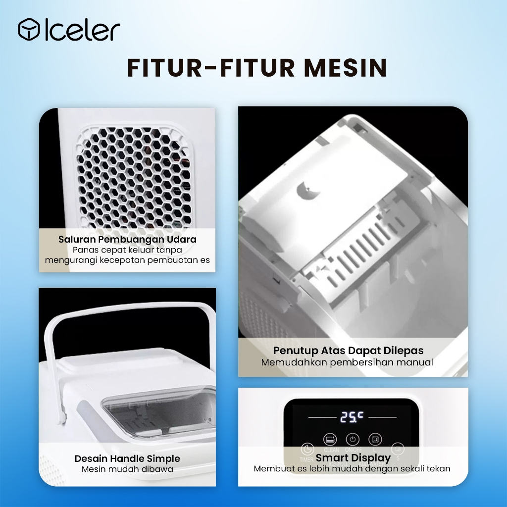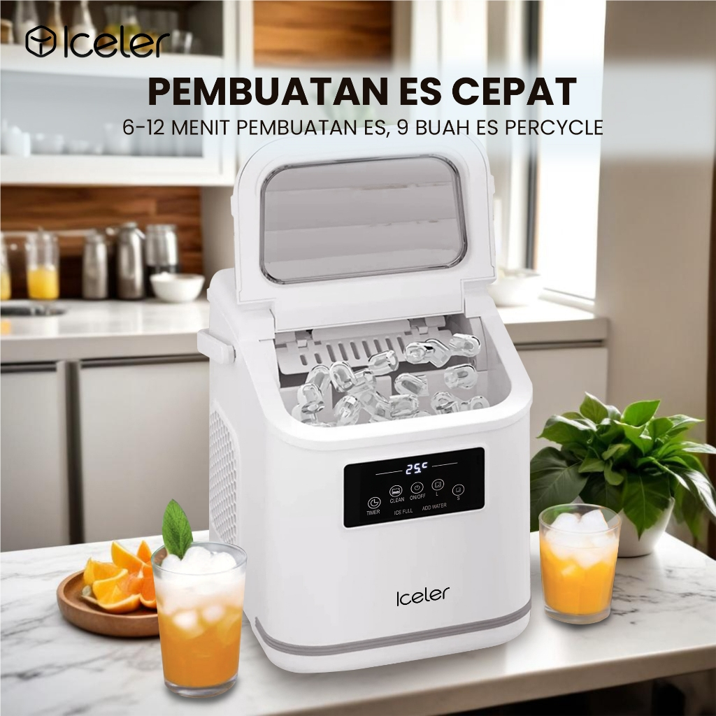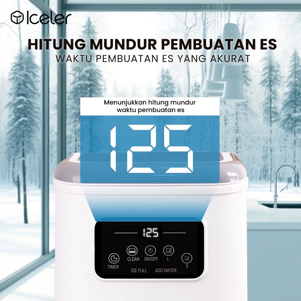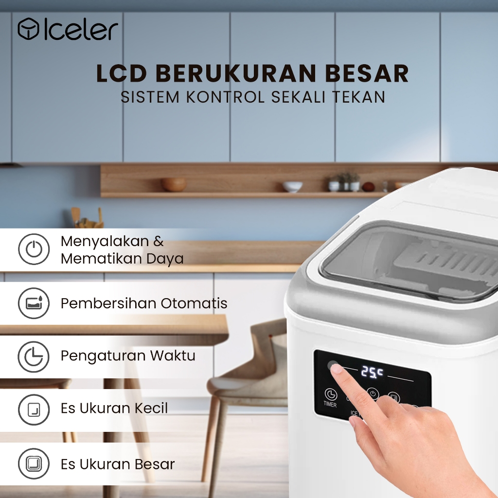 Iceler Mesin Es Digital Kontrol/ Touch Screen Setting Timer ON/OFF/Automatic Cleaning Home Ice Maker