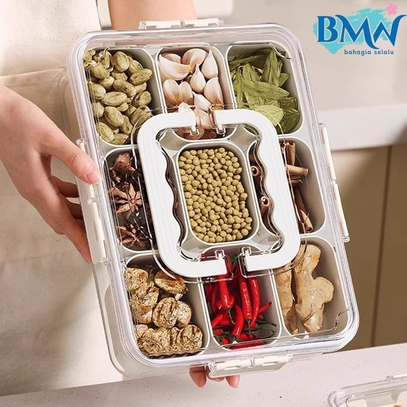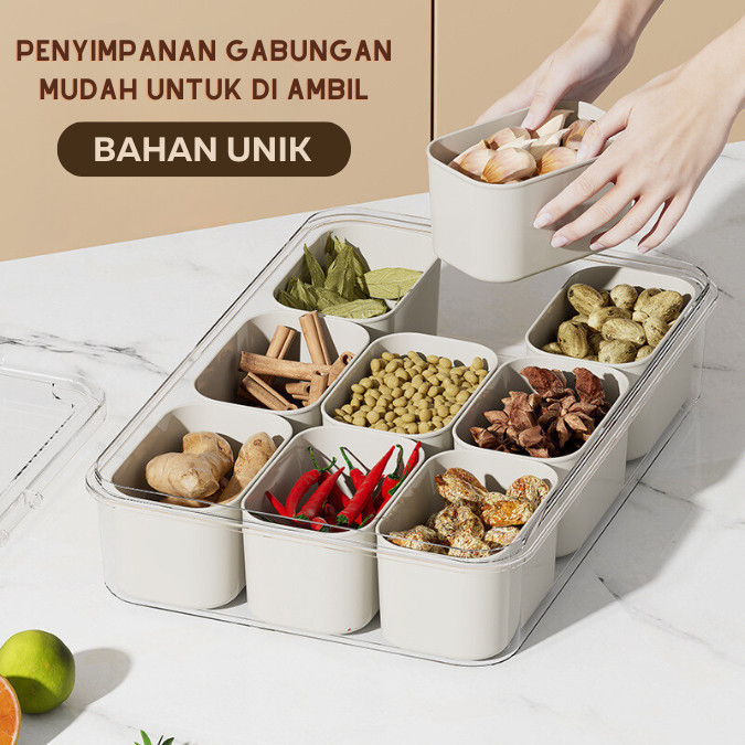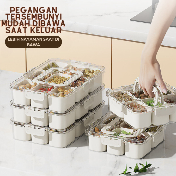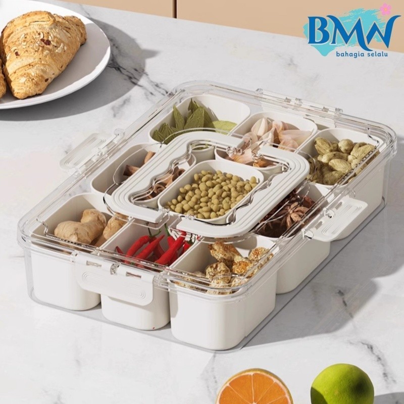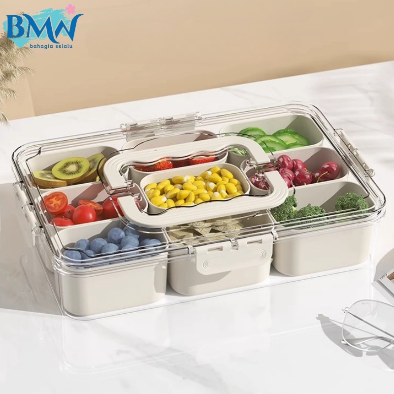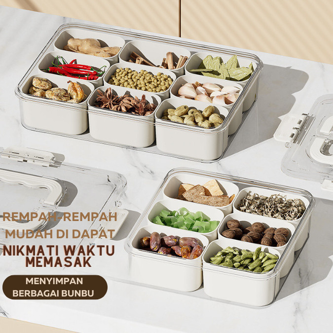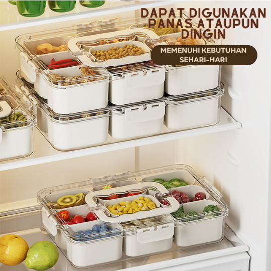 Wadah penyimpanan makanan dengan penutup kedap udara untuk lemari es 9sekat 6sekat
