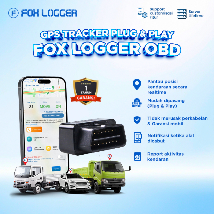 Fox Logger GPS Tracker Pelacak OBD Anti Maling Free Pulsa