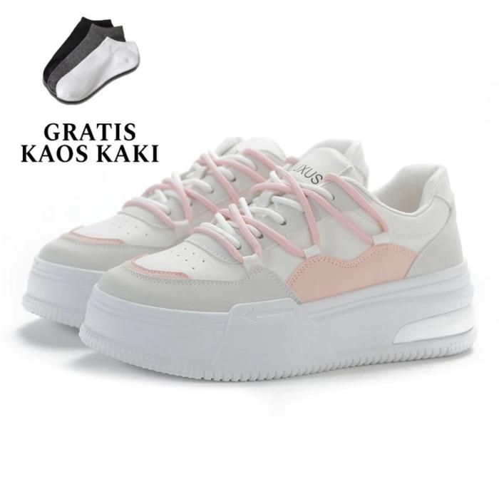 AS Sepatu Sneakers Wanita FLORYN Sepatu Korea Wanita Ootd Kekinian Sneakers White Casual Sport - Hitam 37