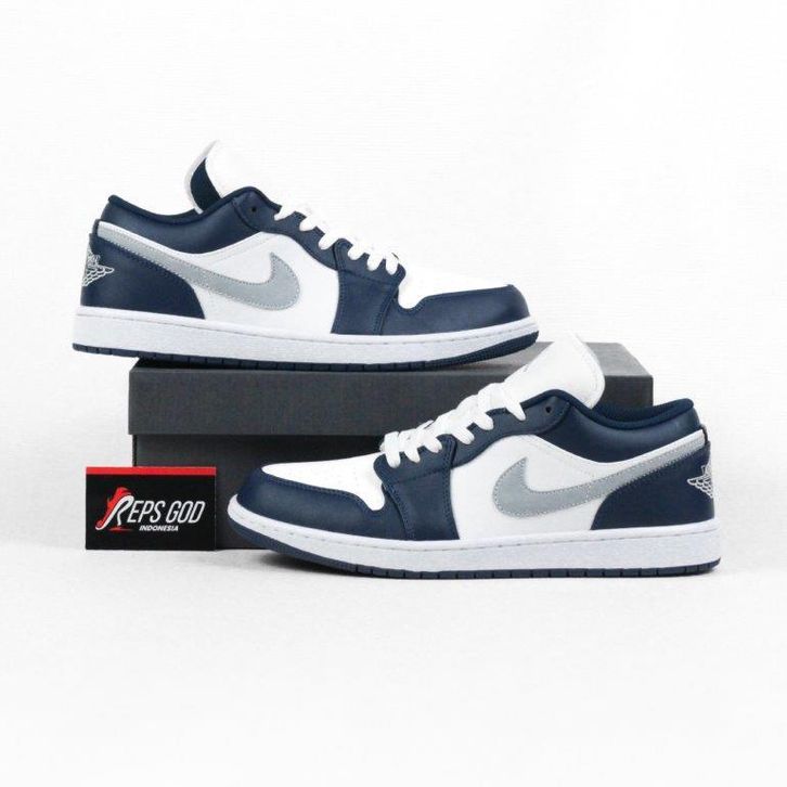 Sepatu Air Jordan 1 Low Wolf Grey Midnight Navy Sneakers