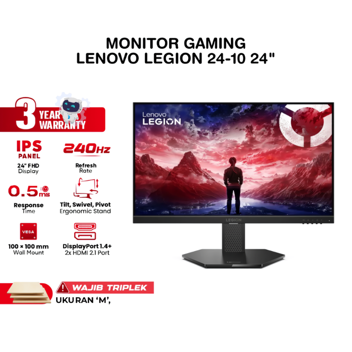 Lenovo Legion Monitor PC Gaming 24-10 24 Inch LED IPS FHD 240Hz 0.5ms AMD HDR10 Full Ergonomic Stand Portable 19 27 32
