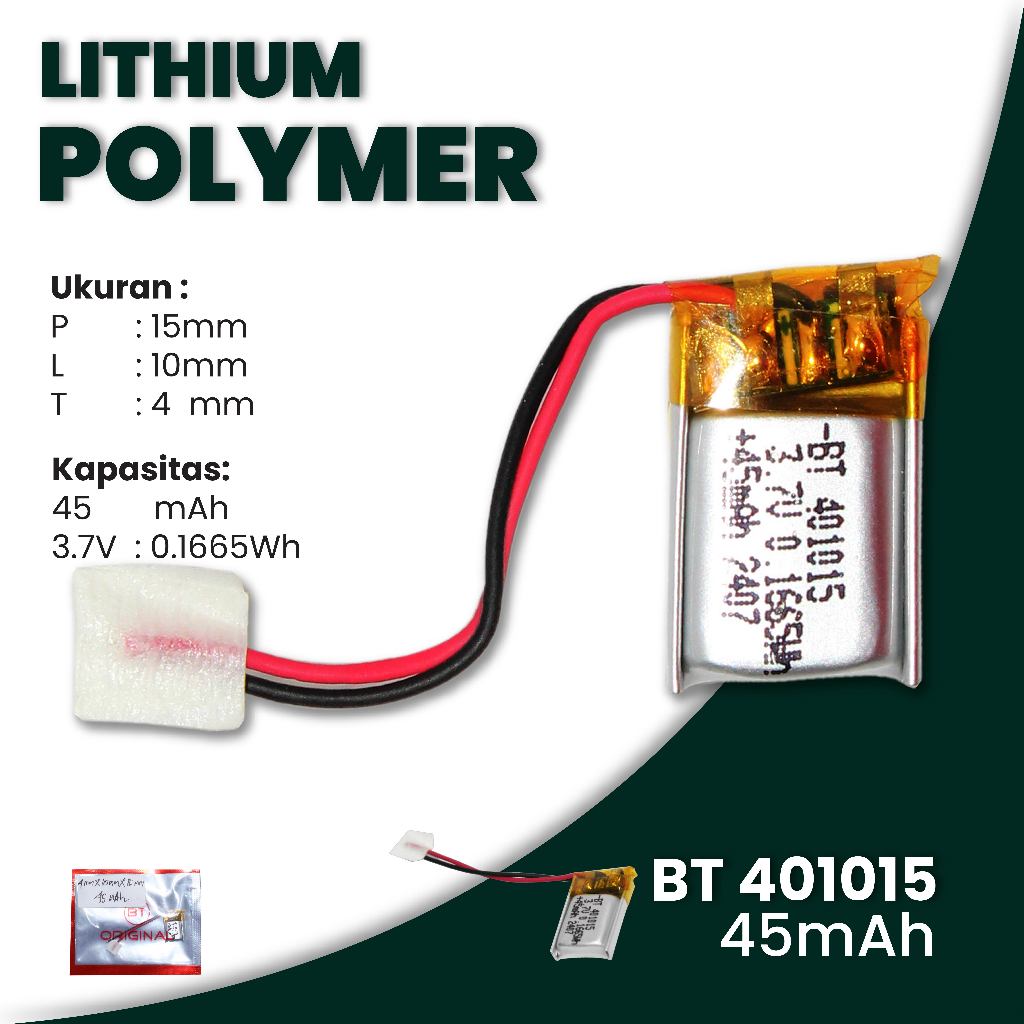 BATERAI LI-ON POLIMER 401015 BATERAI HEADSET BLUETOOTH / TWS / LITHIUM POLYMER 401015 3.7V (45 MAH) 10 X 13MM