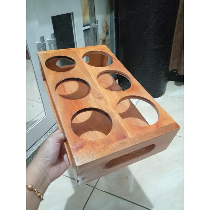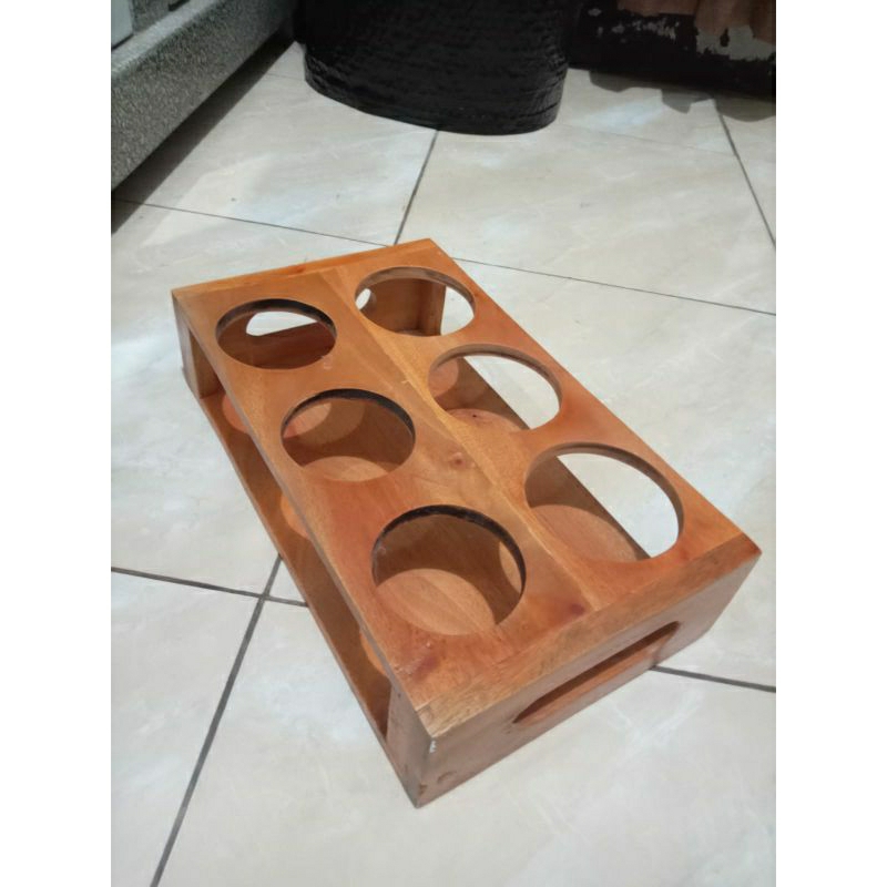 nampan gelas asongan 6 lubang tempat minuman rak botol nampan jualan