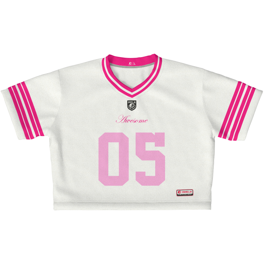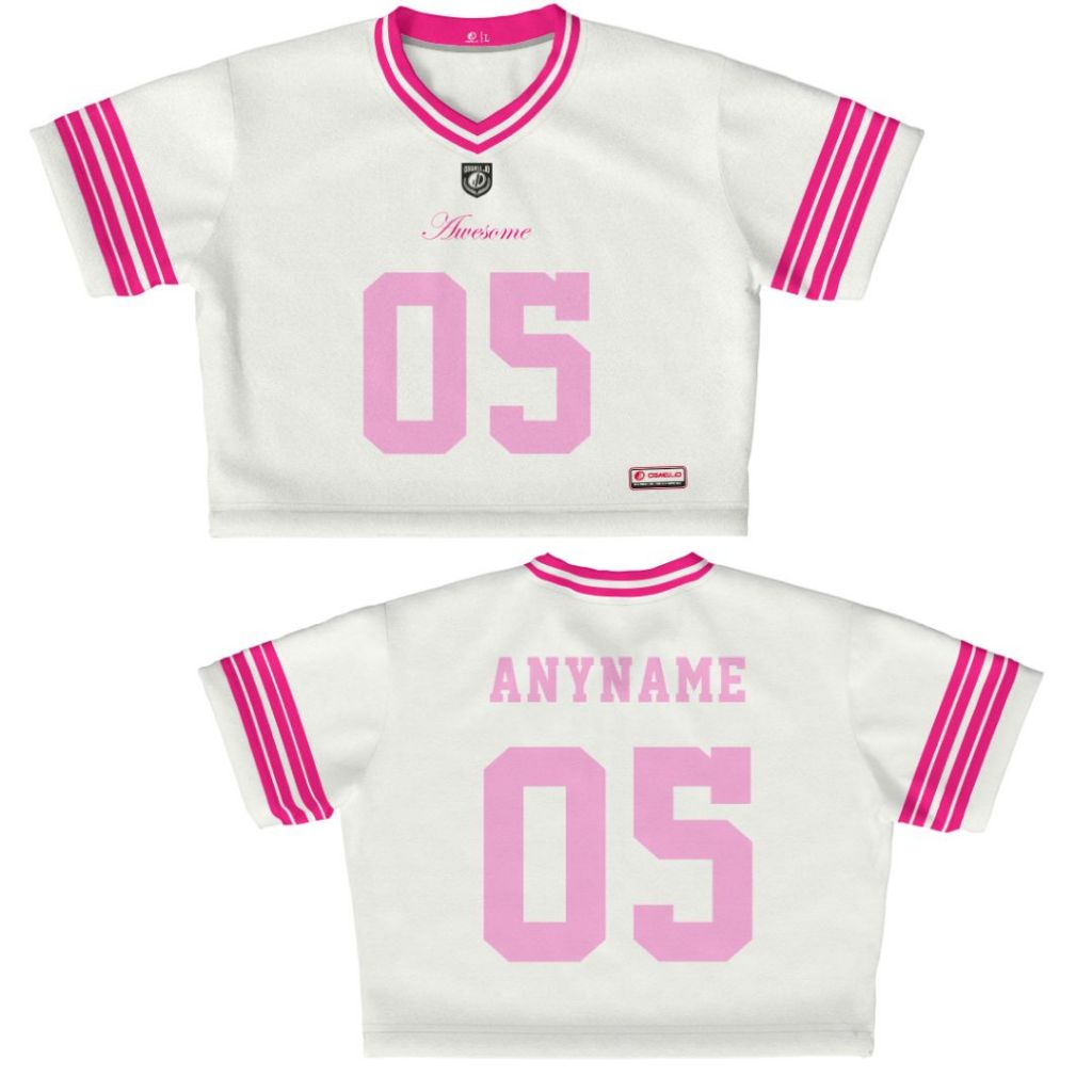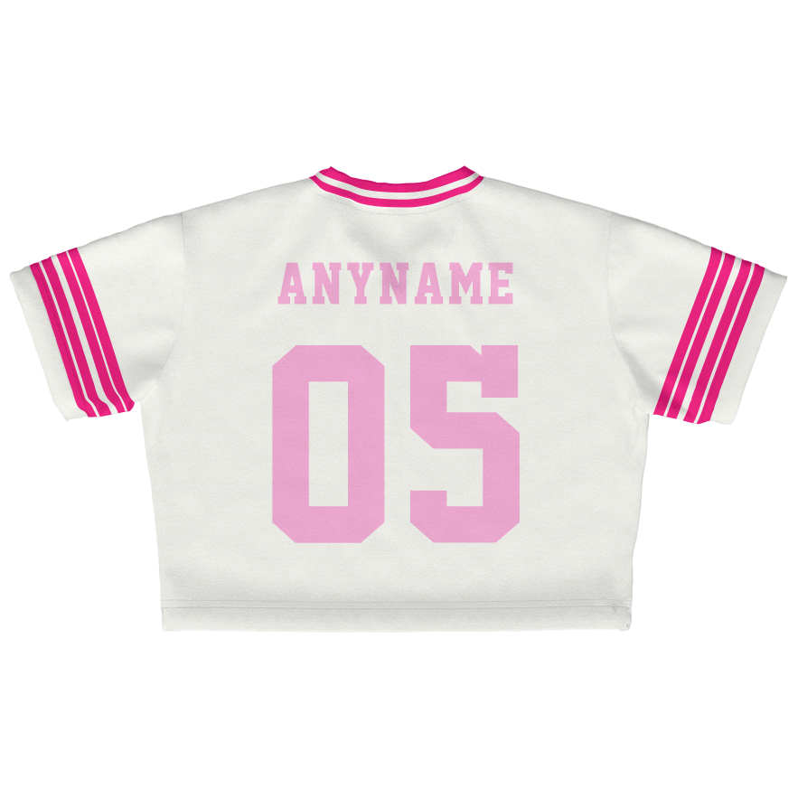 JERSEY GIRLY CROP TOP WHITE PINK 05 GRATIS NAMA DAN NOMOR PUNGGUNG