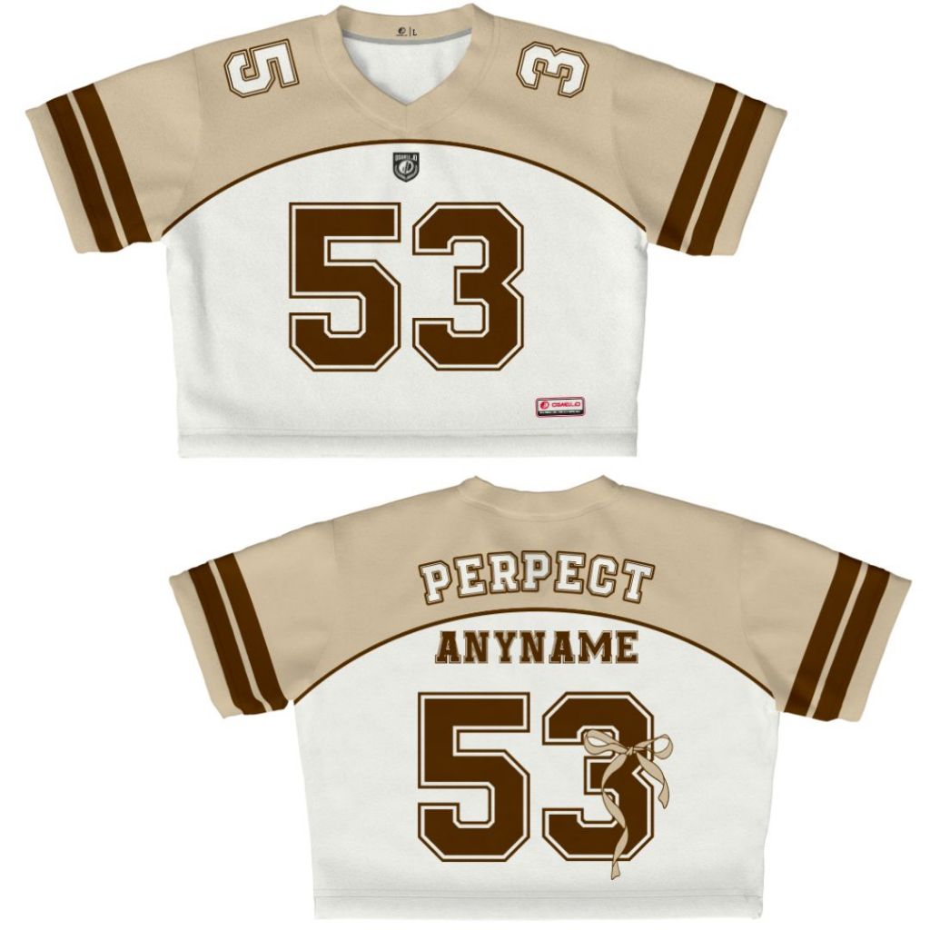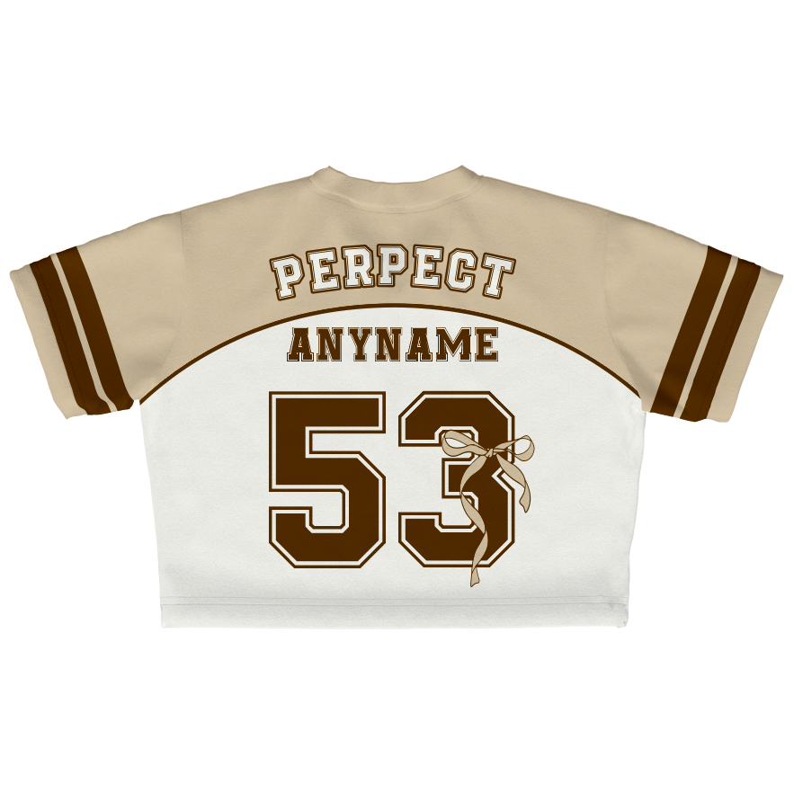 JERSEY GIRLY CROP TOP CREAM COQUEETE 53 GRATIS NAMA DAN NOMOR PUNGGUNG
