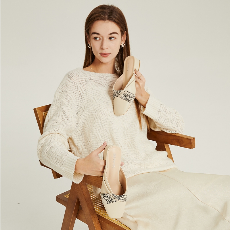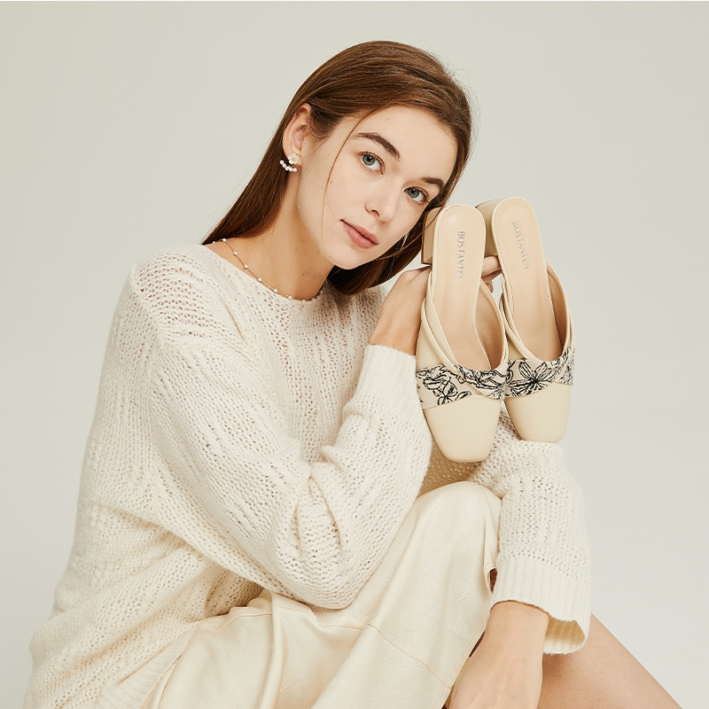 BOSTANTEN Darla Sendal Korean Style Sepatu Jalan Jalan Wanita Mary Jane Shoes Slip On Kekinian 3.5cm
