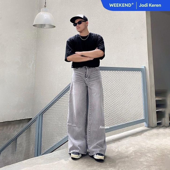 Celana Baggy Pria Jiniso Jeans Jumbo Gombrang Loose Highwaist Murah Ori Official Store