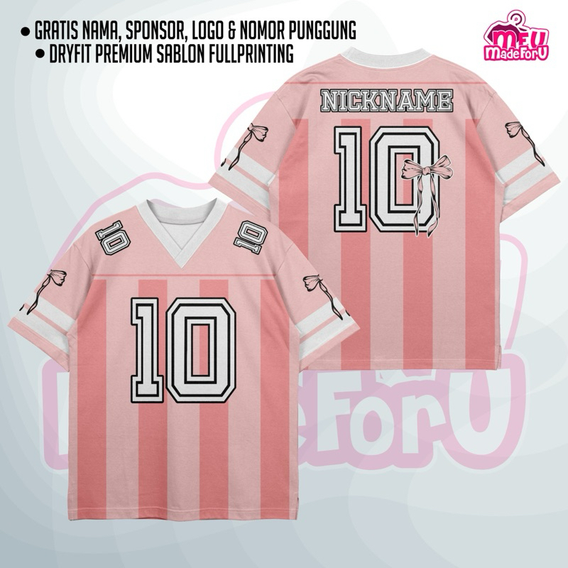 Jersey Baju Wanita/Pria Korea Coqueete Ribbon PINK Custom Zumba, Badminton, Tennis, Futsal, Volly GRATIS NAMA DAN NOMOR
