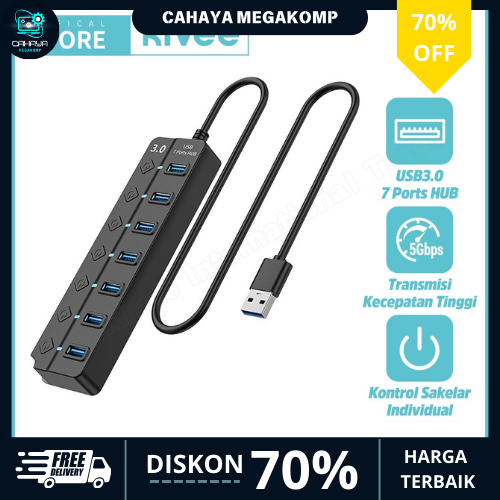 (HOT PROMO) KIVEE USB Hub 7-in-1 USB 3.0 5Gbps saklar independen KV-AD22 Black Aksesoris Desktop & Laptop TERMURAH
