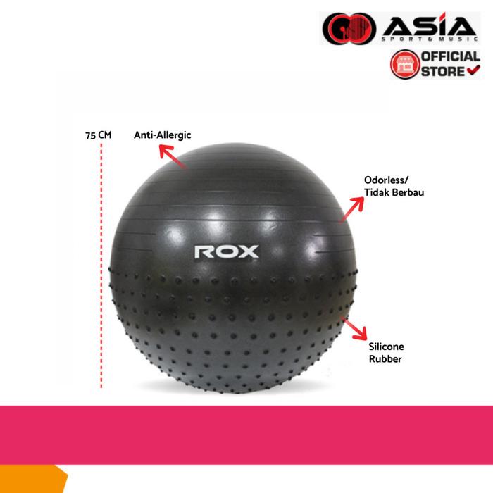 Gym Ball Rox 75 Hitam + Pump Pompa | Gym & Fitness | Bola Gym Kesehatan 75cm