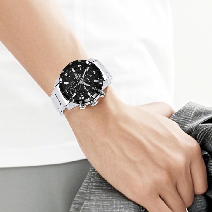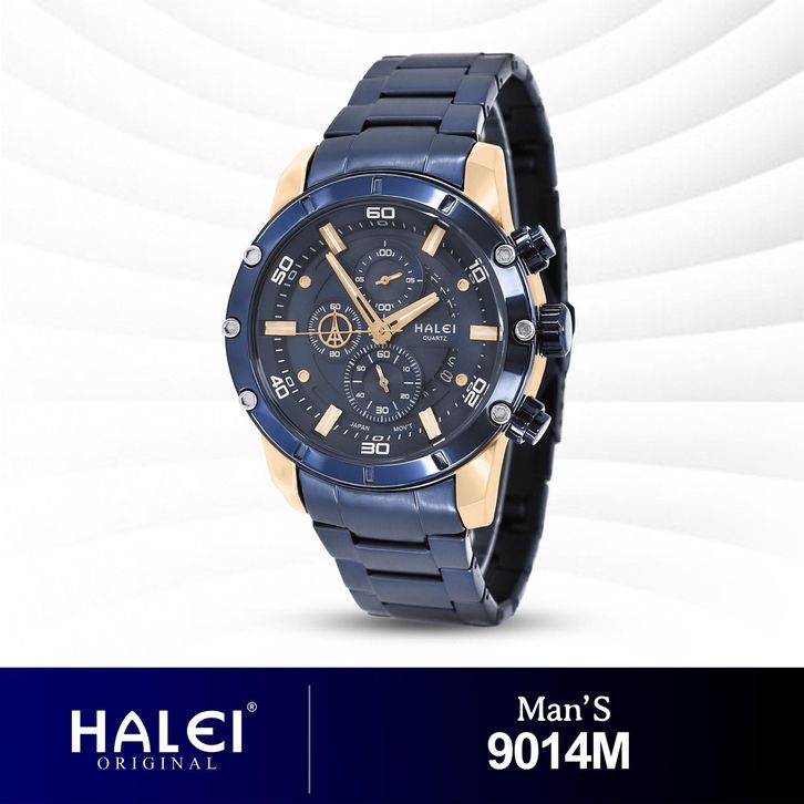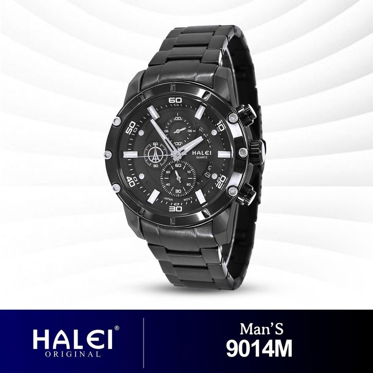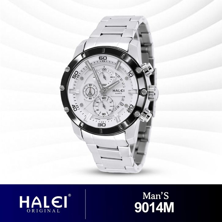 HALEI 9014 JAM TANGAN HALEI PRIA ORIGINAL ANALOG CHRONO ELEGAN RANTAI STAINLESS TANGGAL ANTI AIR