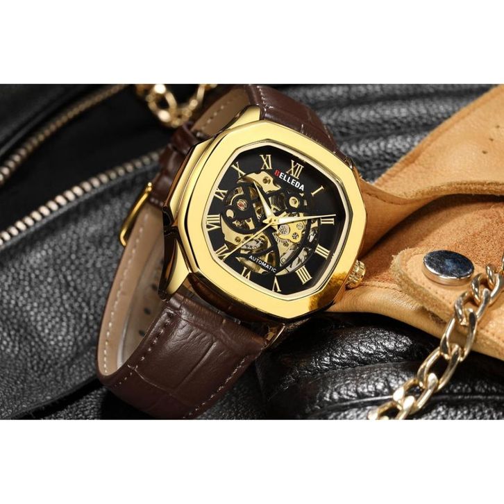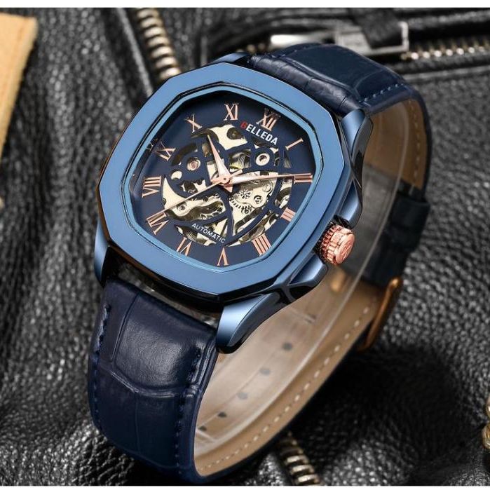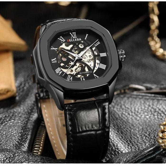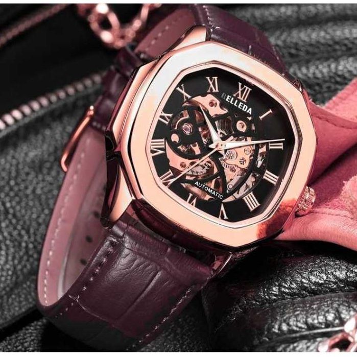 JAM TANGAN PRIA BELLEDA 9484 TALI KULIT SEGI OTOMATIS UNISEX PRIA WANITA WATCH ANTI AIR 3 ATM