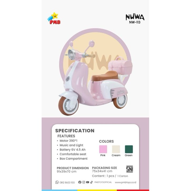 Motor Aki Anak Vespa PMB NW113 Exotic 2242 Volta 5022 2237 Lite Sepeda Listrik Cas Casan Klasik Skuter Scooter