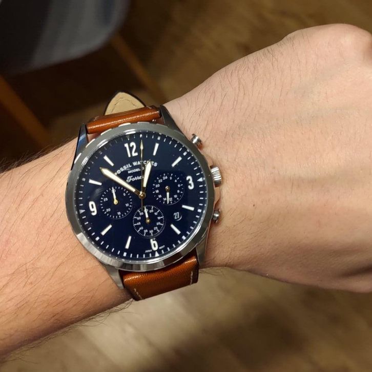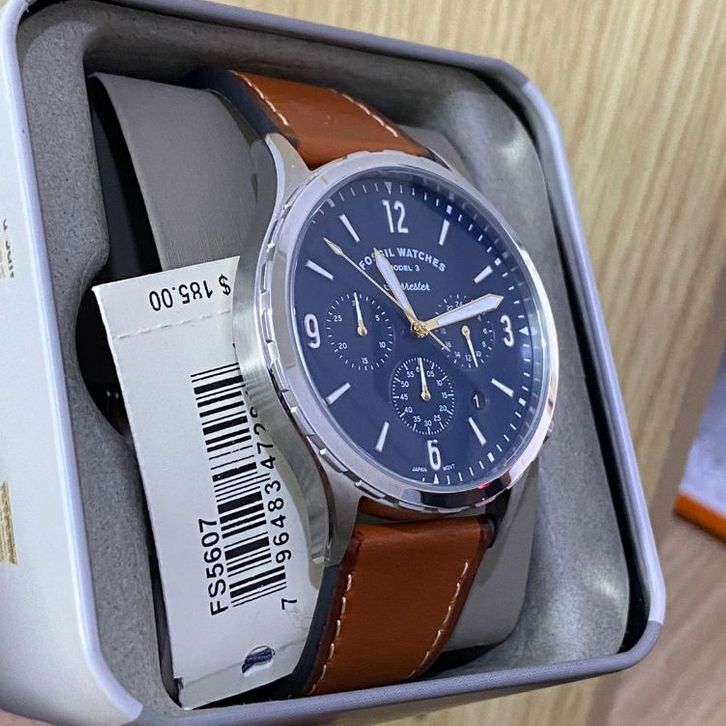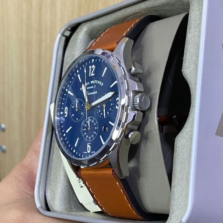JAM TANGAN F S 5607 CHRONOGRAPHH BLUE DIAL BROWN LEATHER ORIGINAL