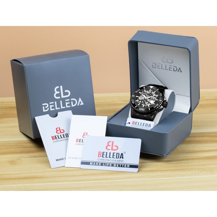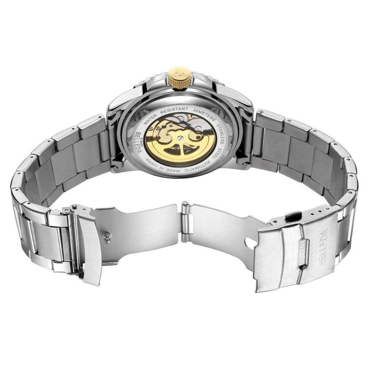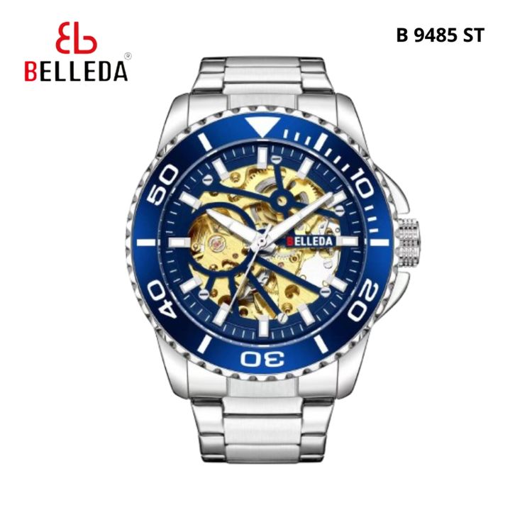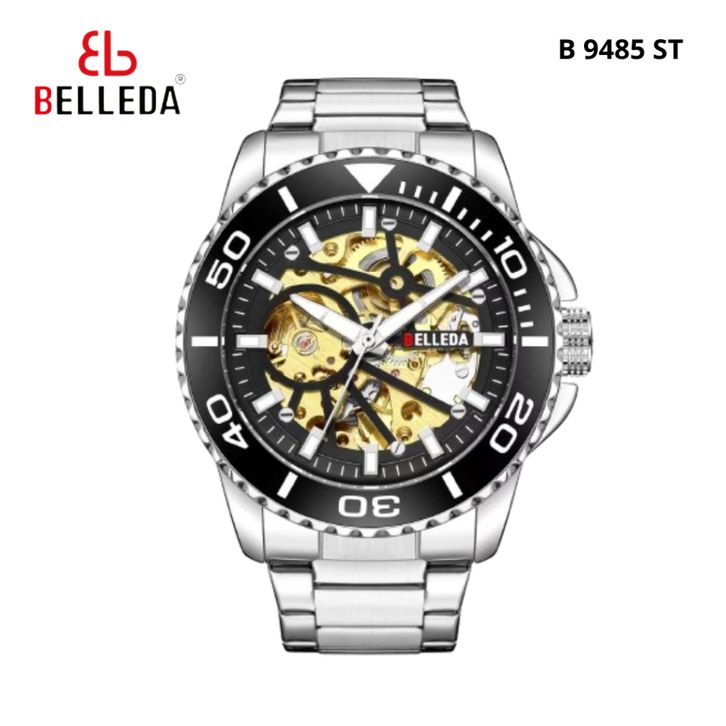 JAM TANGAN PRIA BELLEDA 9485 AUTOMATICC RANTAI MEWAH FASHION KASUAL ANTI AIR 30 METER WATCHES