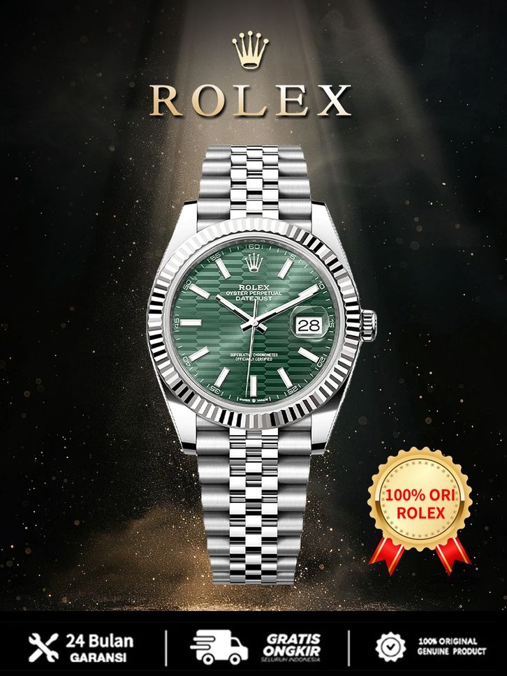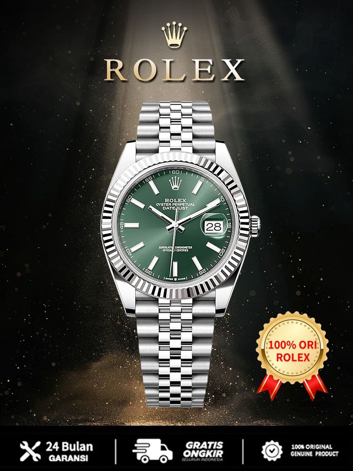 【✅100% ORIGINAL ROLEX】JAM TANGAN ROLEX BARU OYSTER PERPETUAL 41MM PELAT HIJAU JAM TANGAN BAJA MEKANIS OTOMATIS PRIA DAN