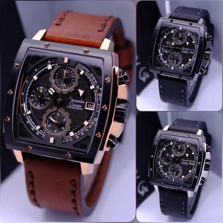 FREE BATRAI JAM TANGAN PRIA ALEXANDRE CHRISTIE AC 6376 / AC6376 LEATHER ORIGINAL GARANSI RESMI 1 TAHUN