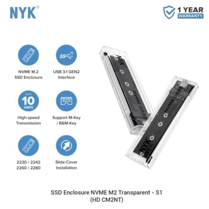 SSD 512gb 1tb 256 Case SSD Nvme M2 NYK S1 Casing SSD Enclosure Nvme Transparan NYK S1 Usb 3.1