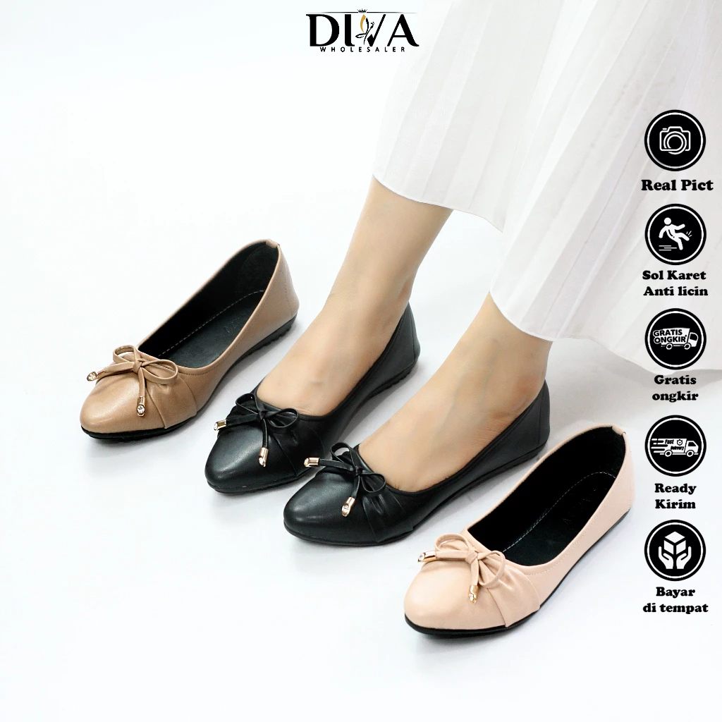 (Gratis Ongkir) Flat Shoes Wanita Sandal Balet Tali Pita Sintetis LT 12